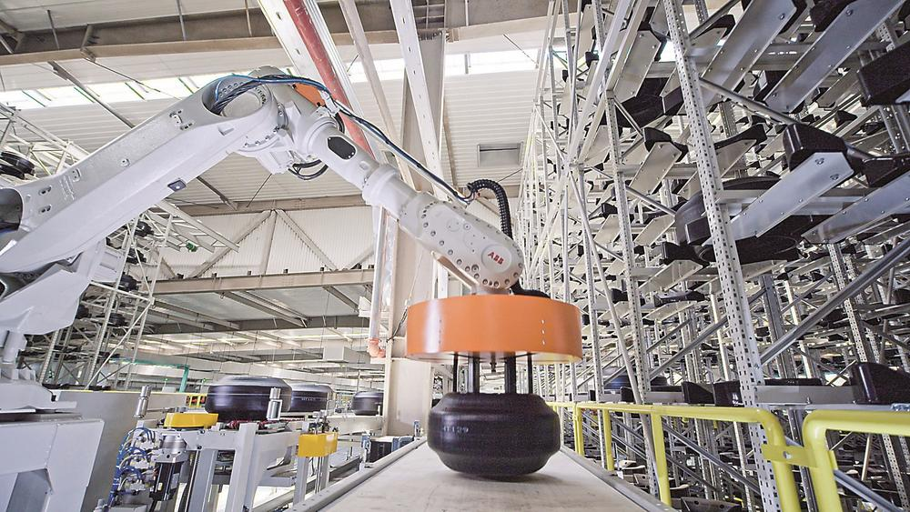 吉林玲瓏輪胎有限公司車間內,無人機械手在工作。