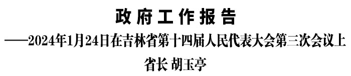 2023年是全面貫徹黨的二十大精神的開局之年,是三年新冠疫情防控轉(zhuǎn)段后經(jīng)濟(jì)恢復(fù)發(fā)展的一年。習(xí)近平總書記再次視察東北主持召開新時(shí)代推動(dòng)?xùn)|北全面振興座談會(huì),親自擘畫東北全面振興發(fā)展新藍(lán)圖,為吉林重振雄風(fēng)、再創(chuàng)佳績(jī)帶來重大機(jī)遇、注入強(qiáng)大動(dòng)力。我們牢記囑托、感恩奮進(jìn),矢志不渝沿著習(xí)近平總書記指引的方向砥礪前行,在省委堅(jiān)強(qiáng)領(lǐng)導(dǎo)下,堅(jiān)決扛起維護(hù)國家“五大安全”重要使命,錨定吉林全面振興率先突破目標(biāo),深入實(shí)施“一主六雙”高質(zhì)量發(fā)展戰(zhàn)略,堅(jiān)定歷史自信、增強(qiáng)歷史主動(dòng),搶抓機(jī)遇、乘勢(shì)而上,堅(jiān)定不移擴(kuò)大內(nèi)需、優(yōu)化結(jié)構(gòu)、挖潛增效、防范化解風(fēng)險(xiǎn),經(jīng)濟(jì)運(yùn)行保持回升向好態(tài)勢(shì),高質(zhì)量發(fā)展扎實(shí)推進(jìn),社會(huì)大局保持穩(wěn)定,振興發(fā)展“上升期”“快車道”積厚成勢(shì),吉林全面振興邁出堅(jiān)實(shí)步伐。