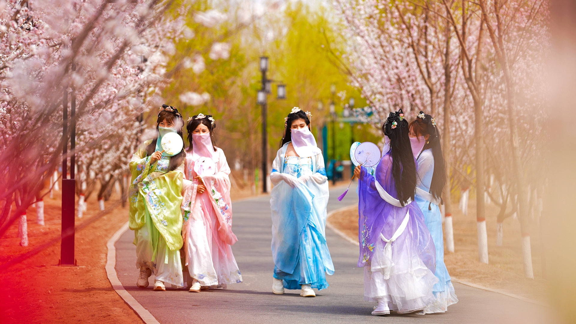 走進游園會現場,賞花匯、花歌會、飛花令、花環舞等系列文藝節目和互動游戲輪番上演。林道兩旁,桃花、杏花、梅花嬌艷盛放,為城市公園扮上“彩妝”,市民們攜親伴友、紛至沓來,在豐富多彩的文娛活動和綺麗旖旎的自然景色中樂享暮春的美妙時光。