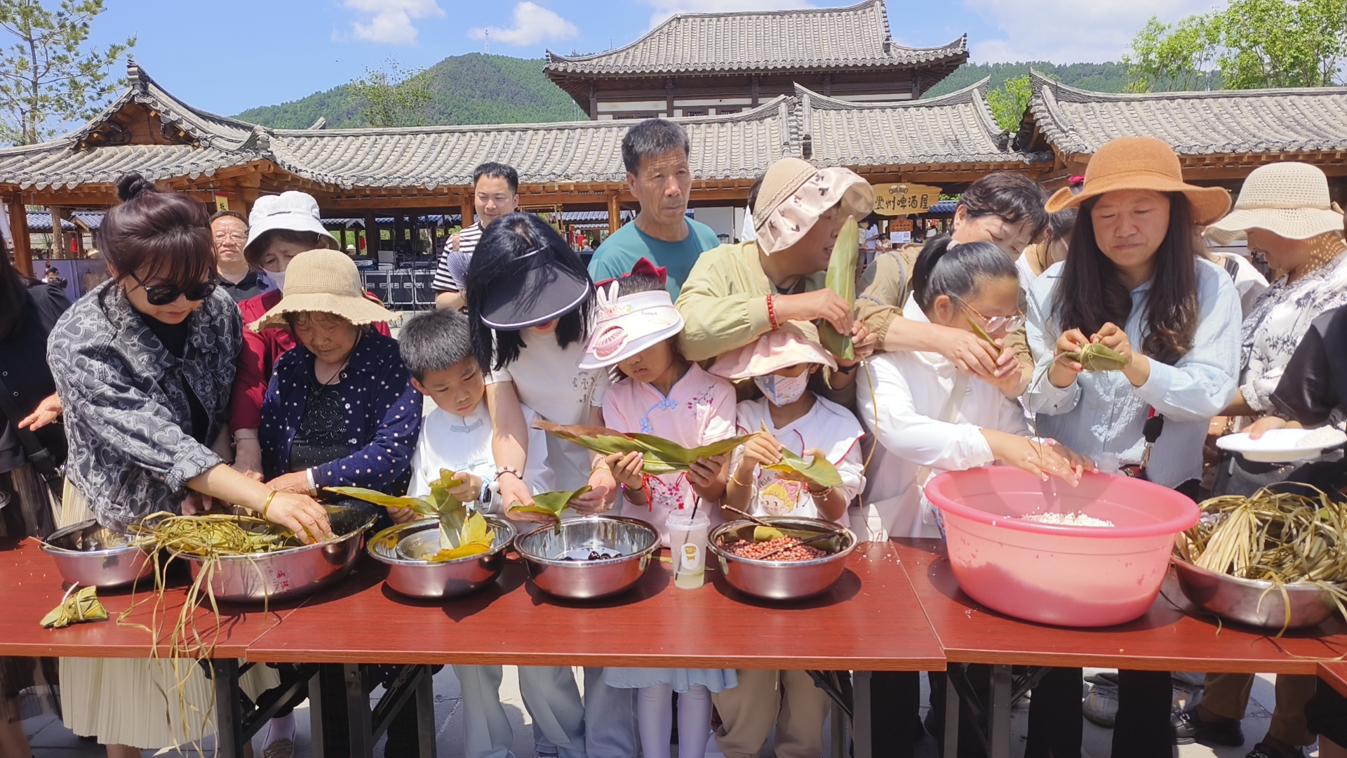 在古市集廣場中央,擺放著三十多種粽葉和八十多種餡料,游客期待已久的端午節(jié)“粽”頭戲——包粽子活動吸引眾多游客踴躍參與。大家巧手翻飛,捋粽葉、填糯米、系粽繩,體驗傳統(tǒng)習俗。“今天和家人一起來千年崖城過端午節(jié),參加了一系列活動,讓孩子對中國傳統(tǒng)文化有了更加深刻的理解,玩得很開心,很有意義。”市民紀慶洋說。