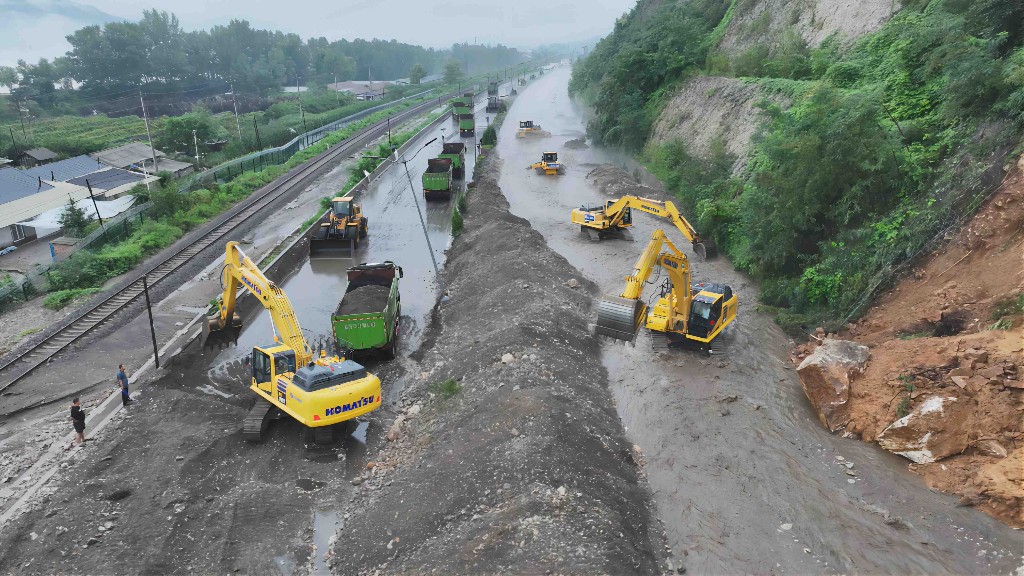 “下雨之前我們就開始著手準備。7月25號凌晨4點左右開始下雨。7點多的時候,下解放村二組山水逐漸就下來了?!薄安荒艿?,得抓緊應對!”聞“汛”而動,田文福立即協調挖掘機,9時許開始清理沙石。