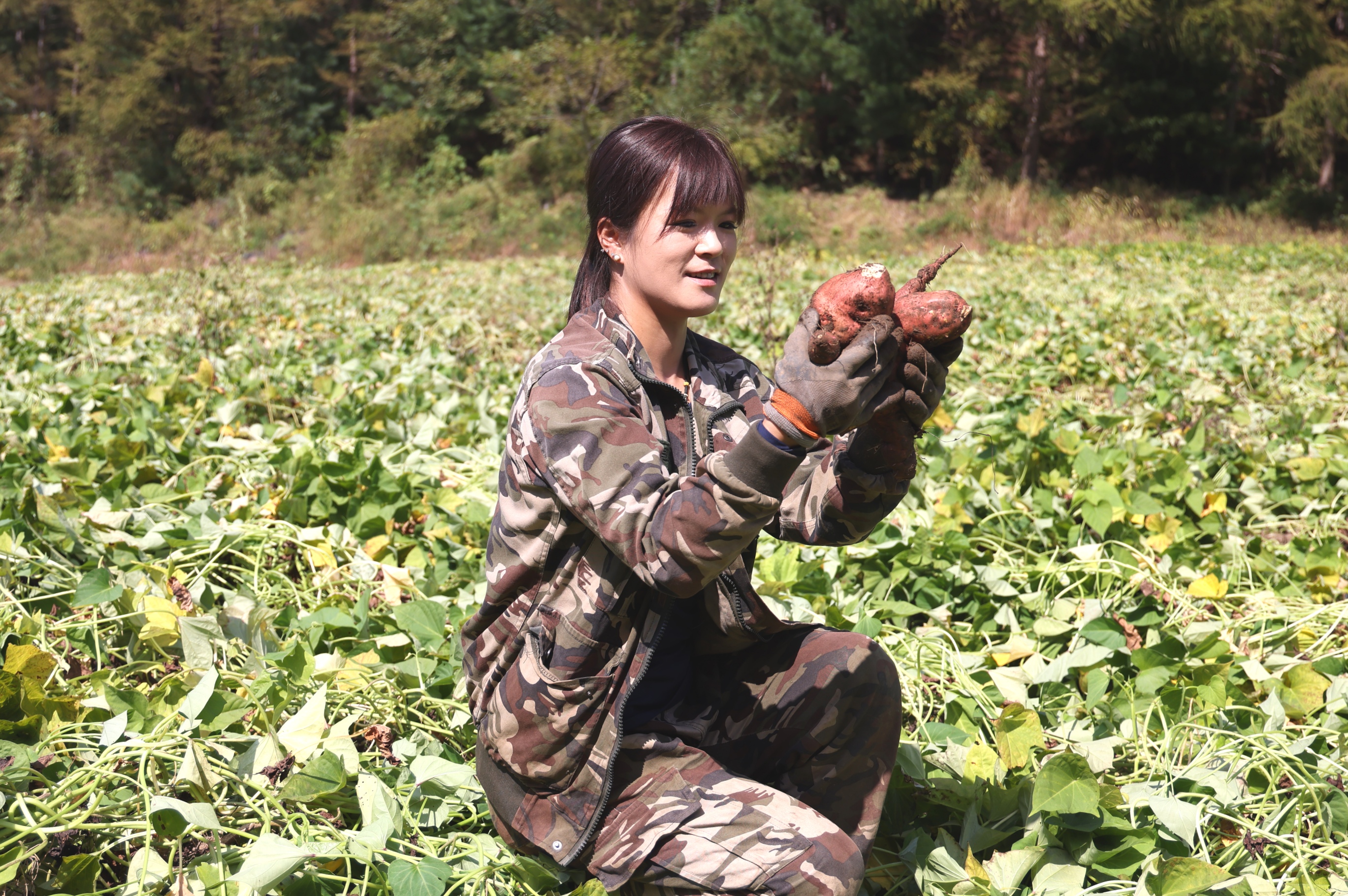 在長白縣八道溝鎮(zhèn)十一道溝村,成片的地瓜田間,只見一個嬌小的身影在一壟壟地刨地瓜。