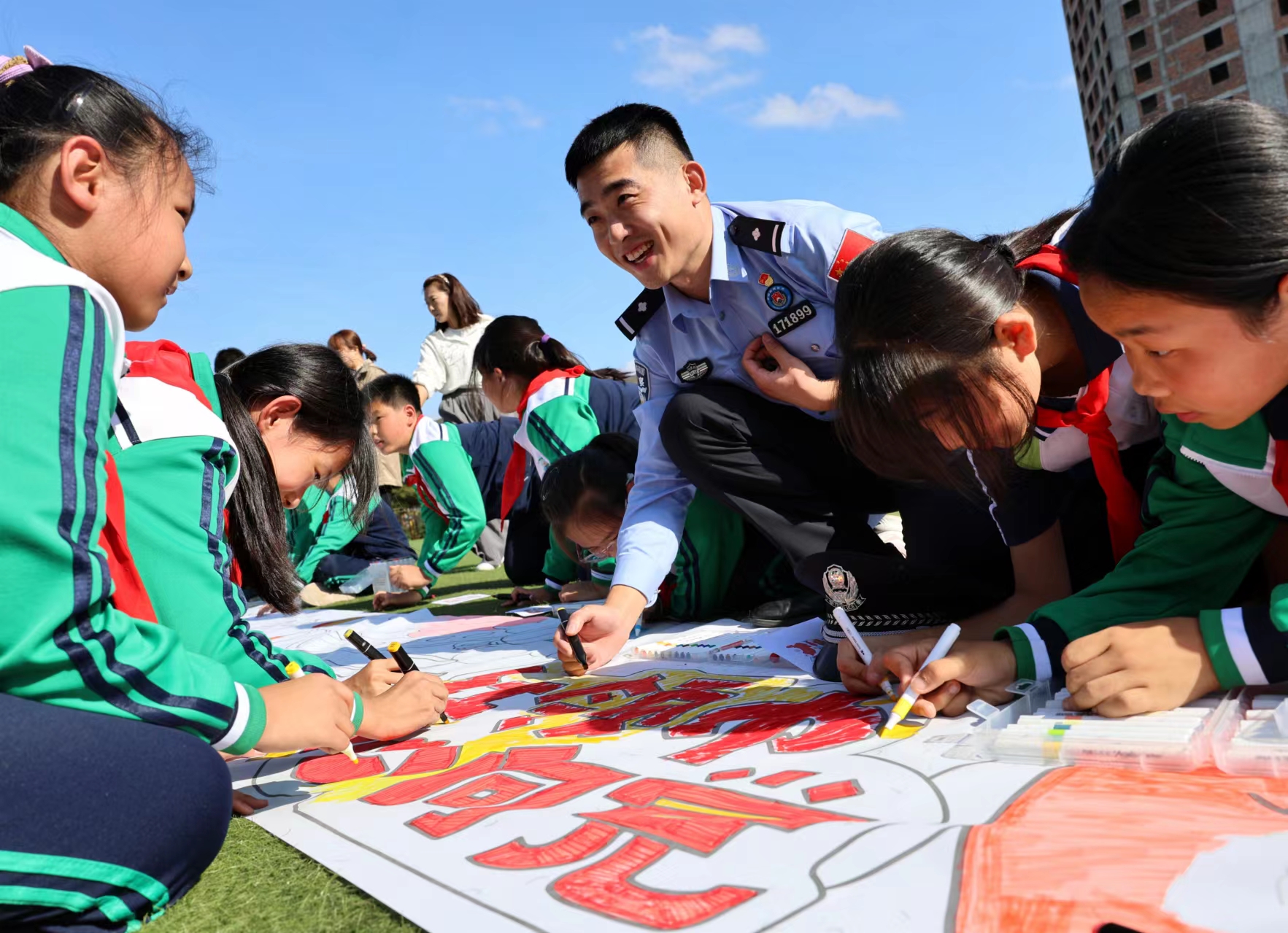 為慶祝中華人民共和國成立75周年,加強(qiáng)青少年愛國主義教育和思想引領(lǐng),讓家國觀念、愛國意識在孩子們心中牢牢扎根。圖們出入境邊防檢查站的民警攜手圖們國門紅軍小學(xué)同學(xué)們,用畫筆繪就百米畫卷,表達(dá)對祖國的熱愛與祝福。