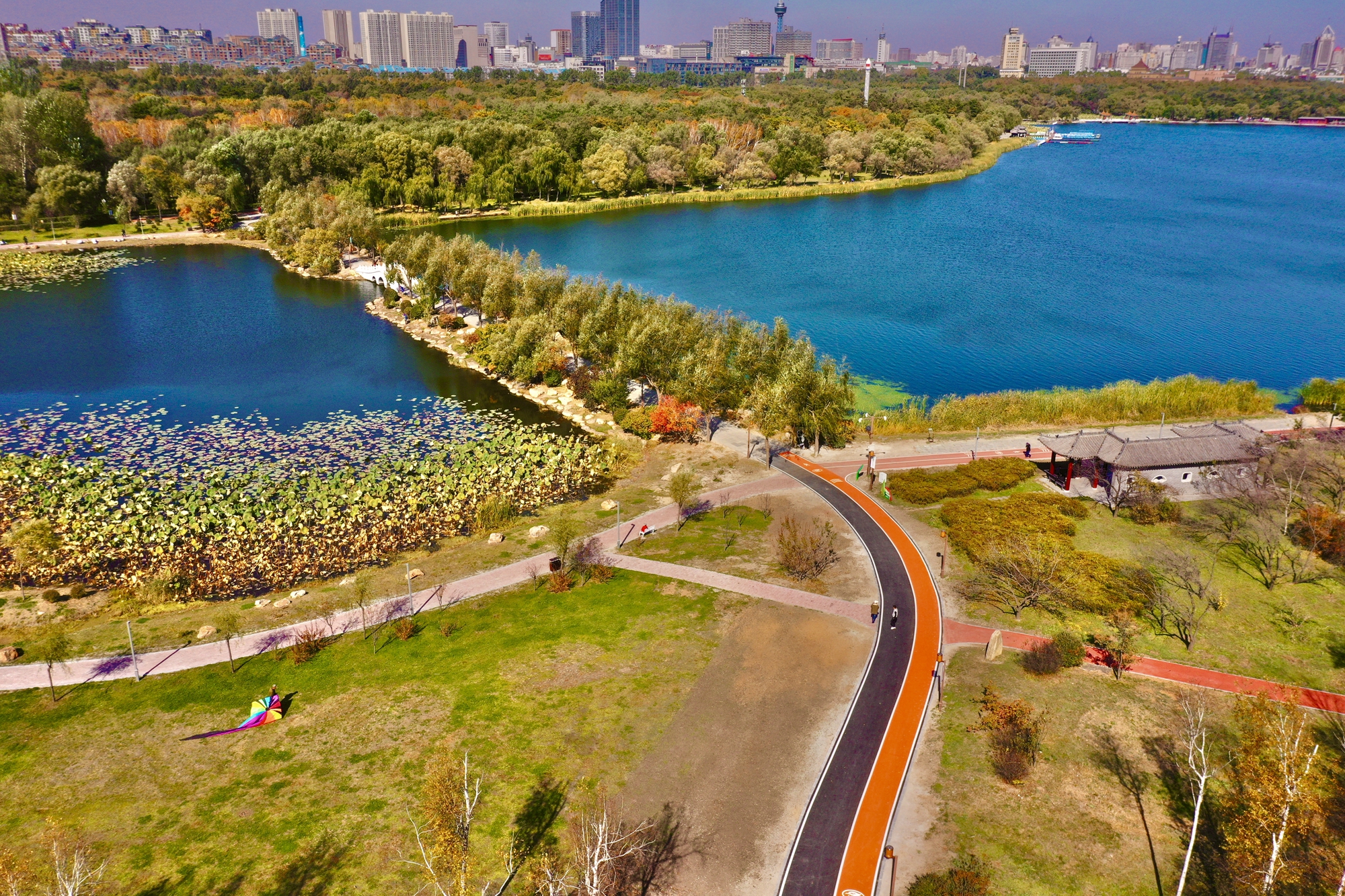 當秋天的腳步悄然踏入長春,南湖公園便如同一幅絢麗多彩的畫卷,徐徐展開。