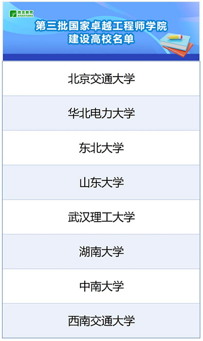 根據(jù)《教育部辦公廳 國(guó)務(wù)院國(guó)資委辦公廳關(guān)于支持部分高校和中央企業(yè)試點(diǎn)共建國(guó)家卓越工程師學(xué)院的通知》,經(jīng)商國(guó)務(wù)院國(guó)資委,教育部決定支持部分高校與企業(yè)共建第三批國(guó)家卓越工程師學(xué)院。近日,教育部公布第三批國(guó)家卓越工程師學(xué)院建設(shè)高校名單,一起來看——