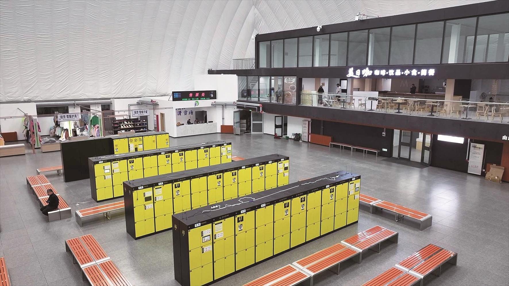 走進和平滑雪場,煥然一新的雪具大廳立即吸引了記者的目光。在寬敞明亮的雪具大廳內,最新引進的各種滑雪設備整齊排列,游客通過掃碼快速租賃裝備。走出大廳,只需步行數十米,便能踏上魔毯。
