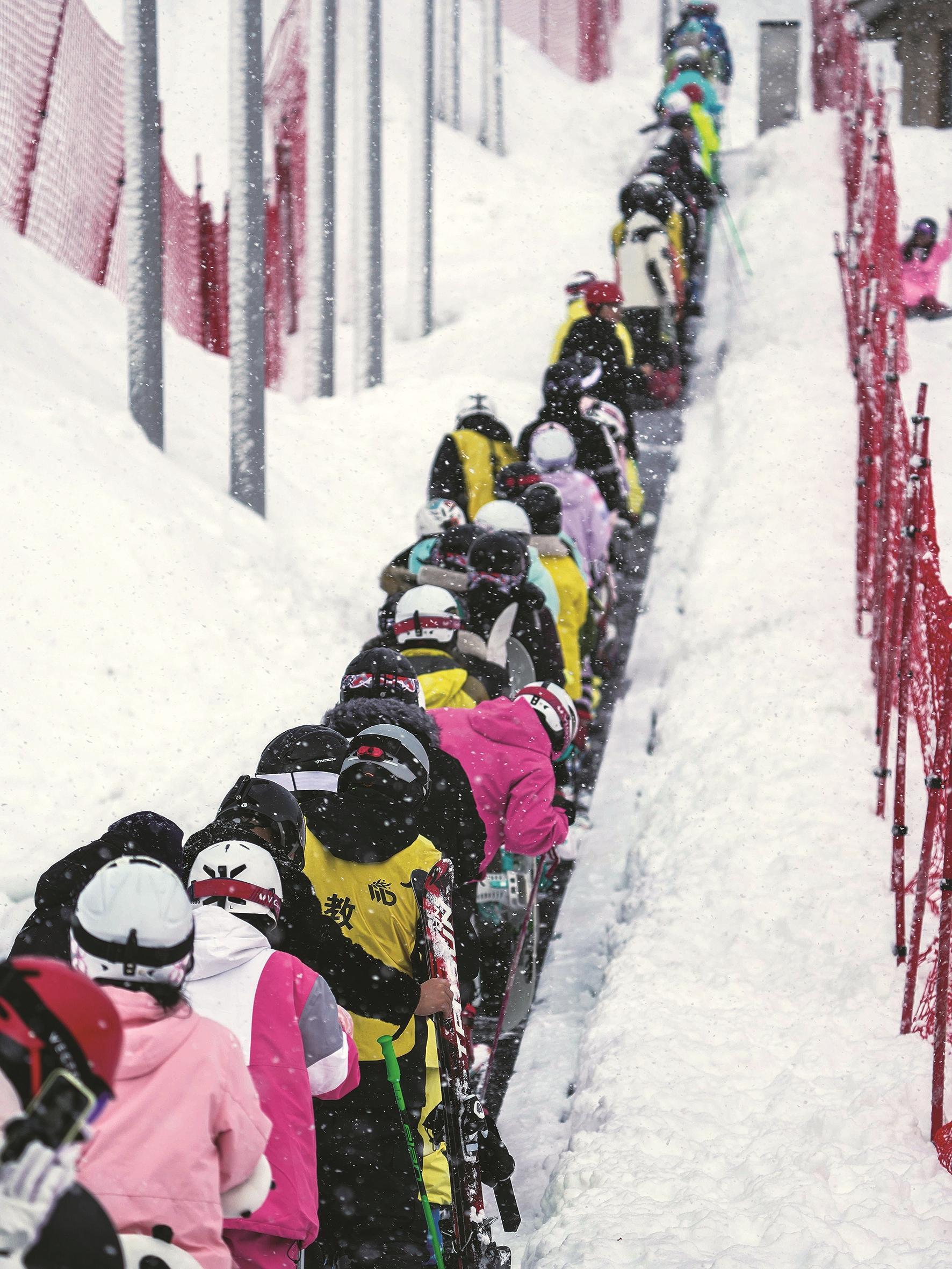 嶄新的魔毯直通初學者雪道,成為滑雪新手的最愛。“今年,我們新增了2000平方米的雪具大廳,可以同時容納2500人使用,還增加了兩條魔毯,進一步提升了游客的體驗感。”和平滑雪場副總經理劉金星介紹。