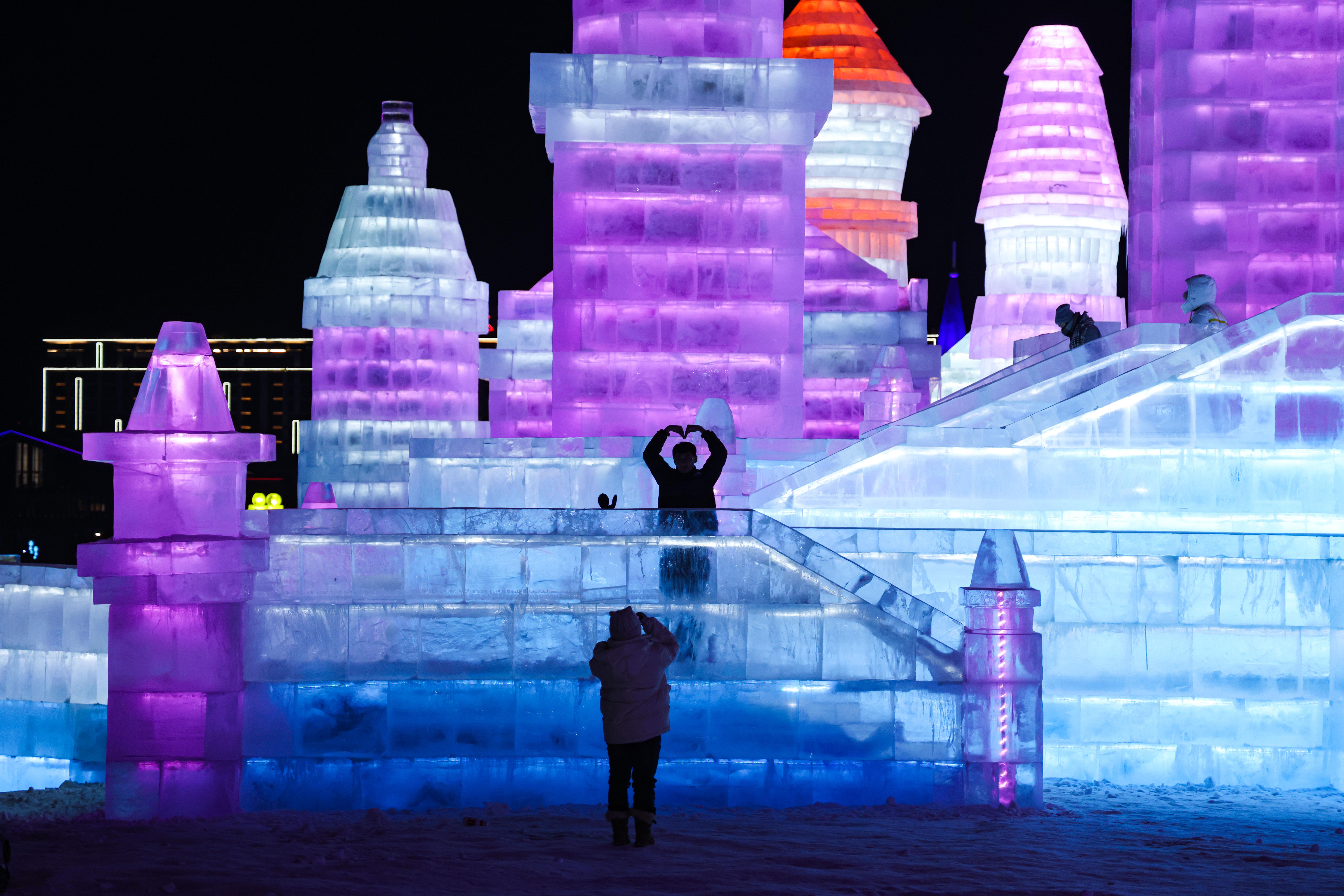 12月17日19時,第28屆長春冰雪節在長春冰雪新天地正式啟動。長春冰雪新天地璀璨開園。夜幕下的長春冰雪新天地流光溢彩,一座座冰雪雕塑美輪美奐,仿佛一幅色彩斑斕的唯美畫卷。