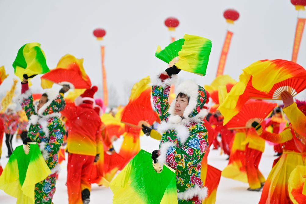 ↑12月23日,當(dāng)?shù)卮迕裨诒荣惡蟊硌菅砀琛P氯A社記者 顏麟蘊(yùn) 攝