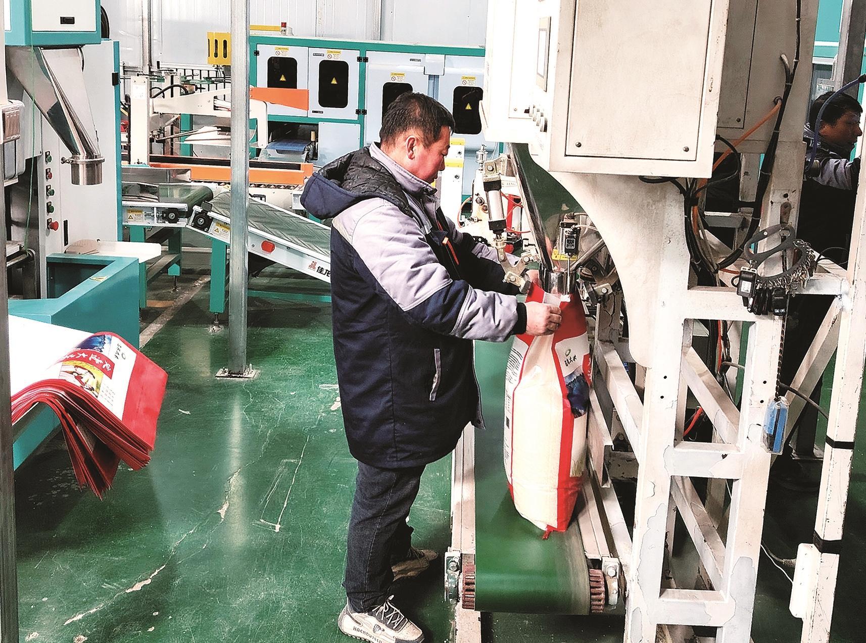 延邊元利延邊大米工貿有限公司現擁有水稻育苗機、插秧機、水稻加工等一整套的現代化的質量安全可追溯平臺。日加工能力80噸,年產量3000噸左右。圖為工作人員正在進行大米裝袋。 代黎黎 攝