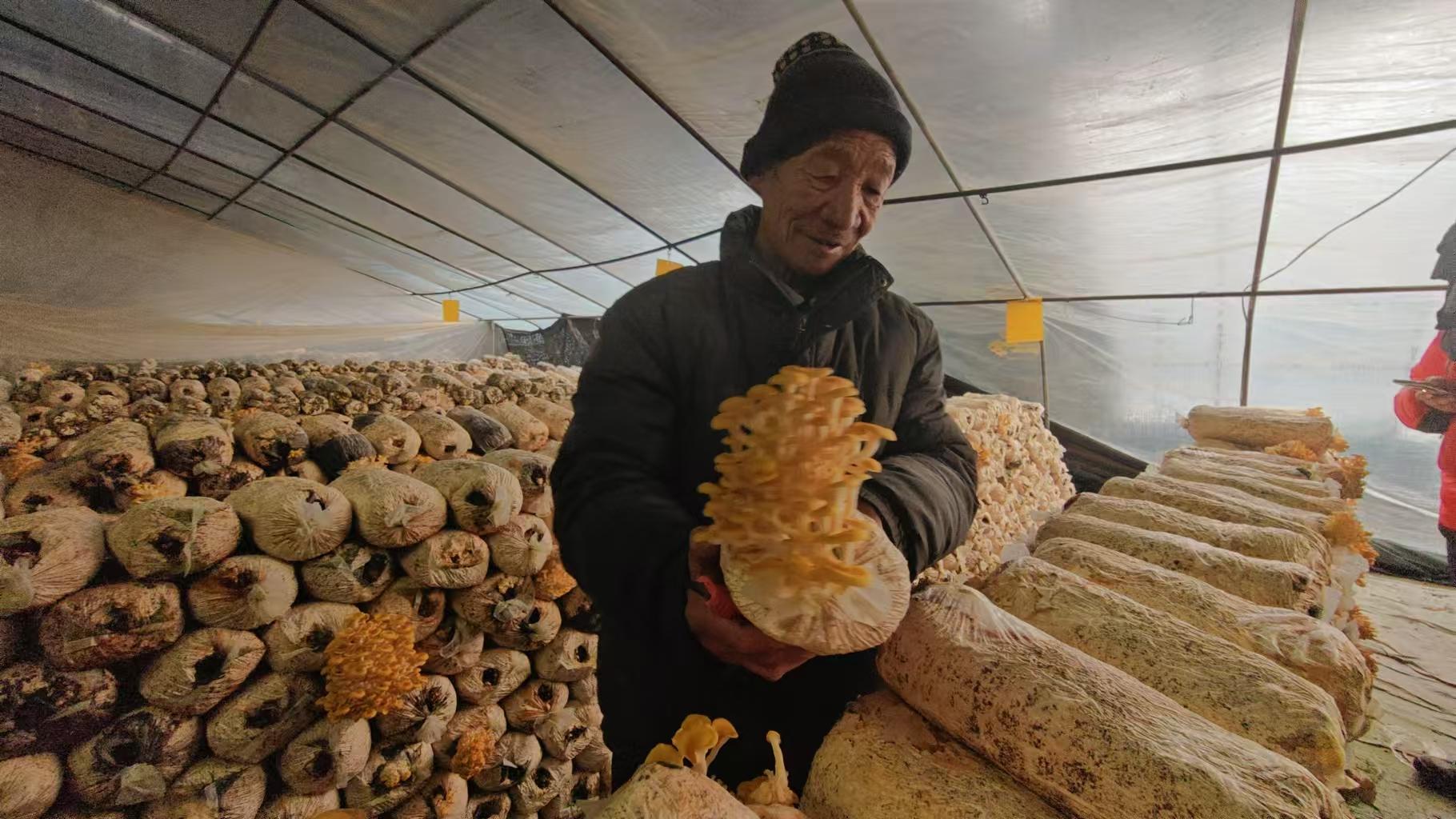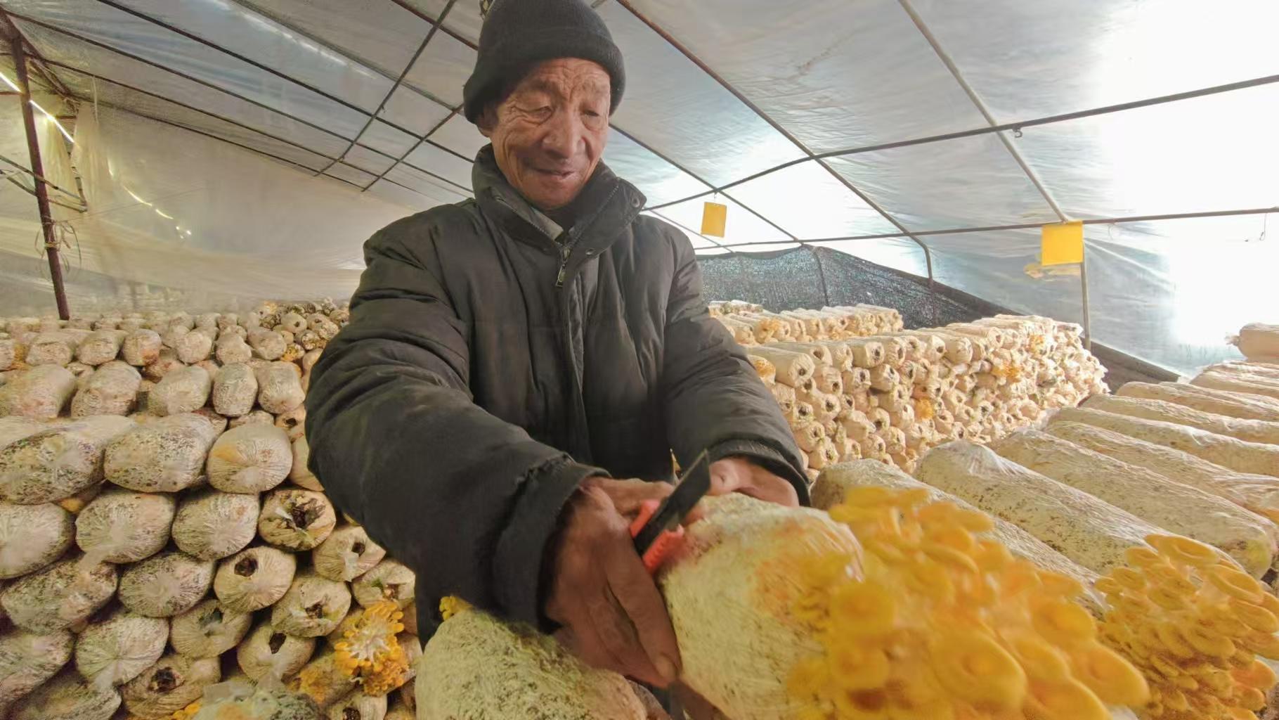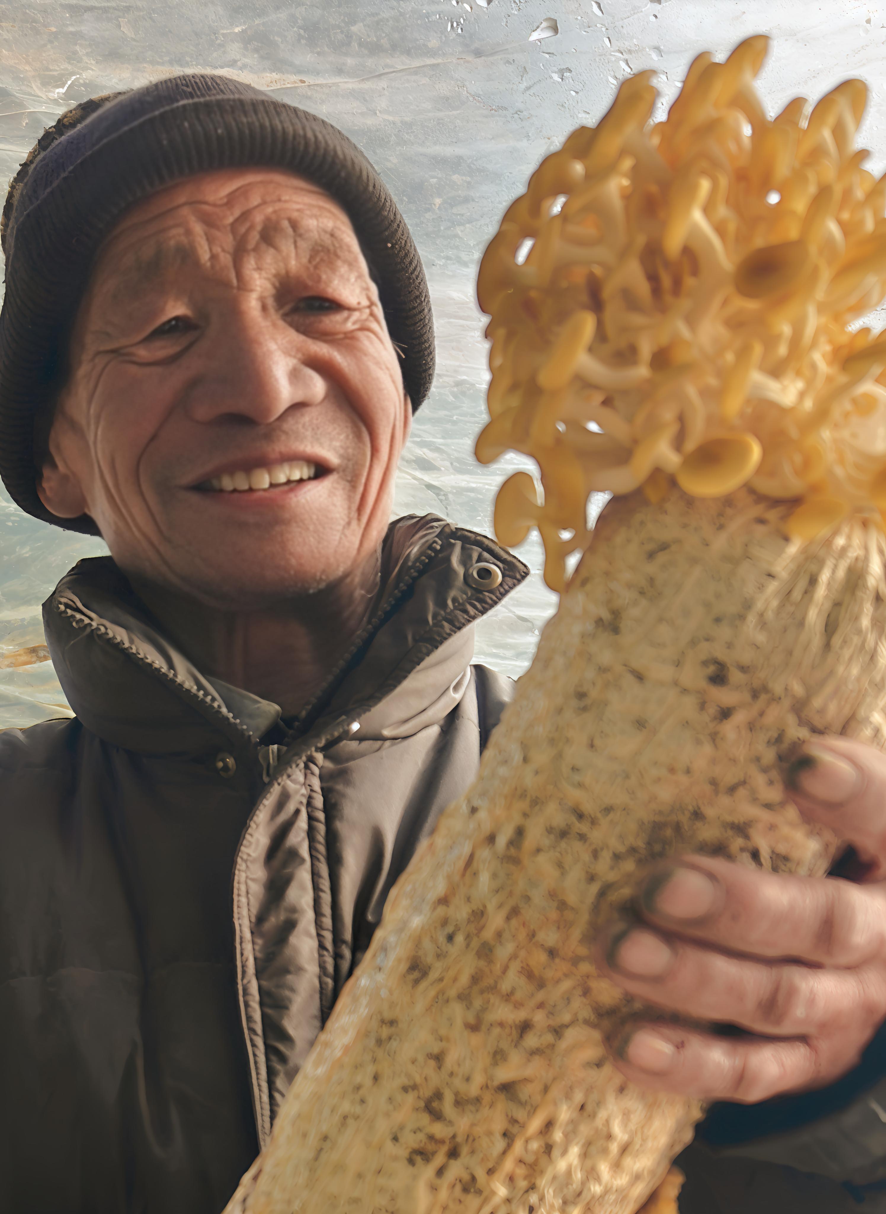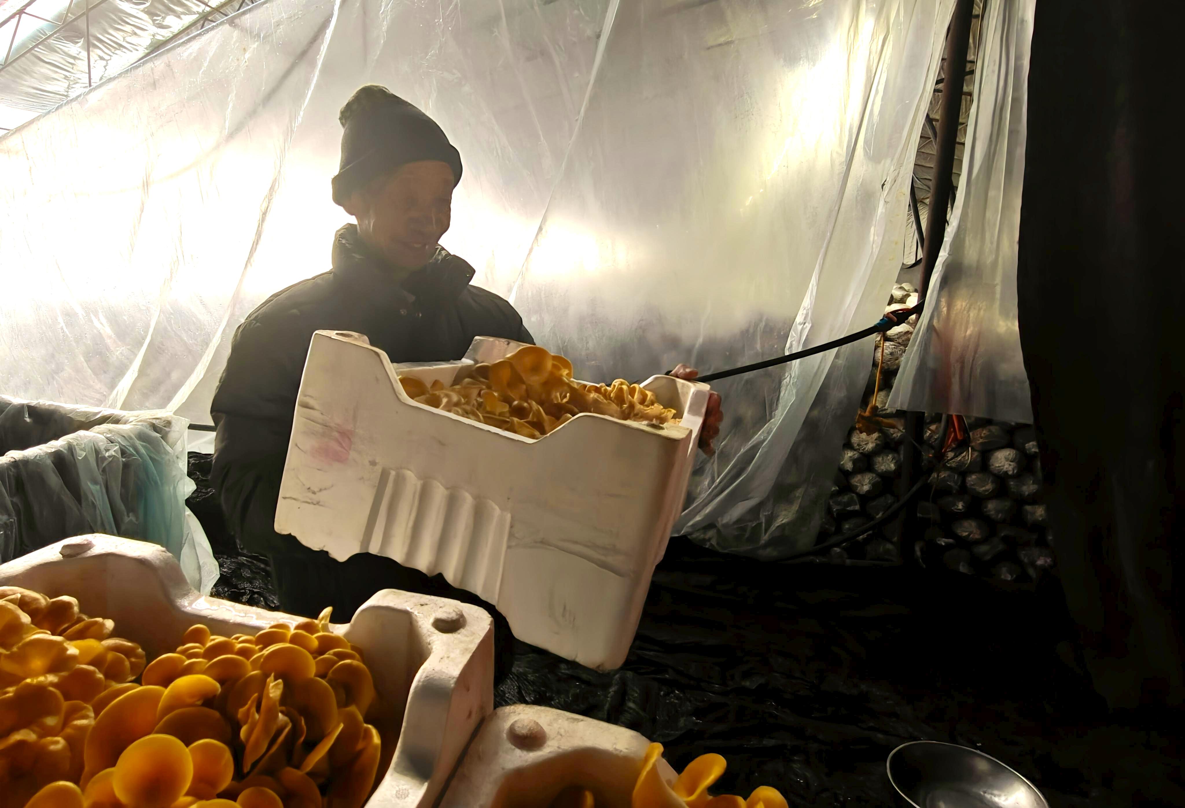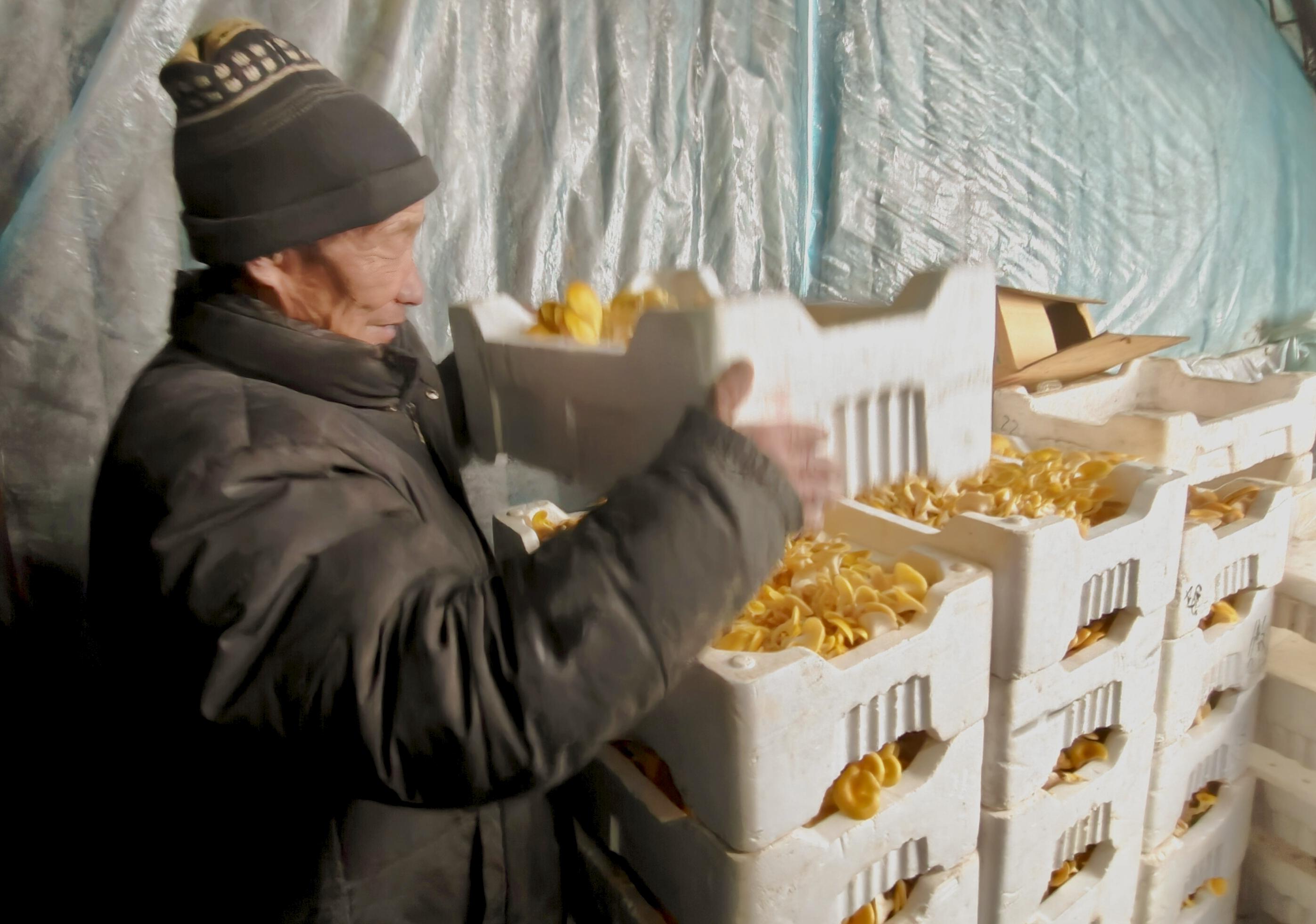 在寒冷的冬日,走進吉林市豐滿區旺起鎮旺起村食用菌大棚,只見一排排菌棒整齊排列,一朵朵菌菇菌肉飽滿、形態各異。這里主要種植黃蘑、平茹。圖為種植戶王本坤正忙著采收新鮮香菇,臉上洋溢著幸福的笑容。張景峰攝