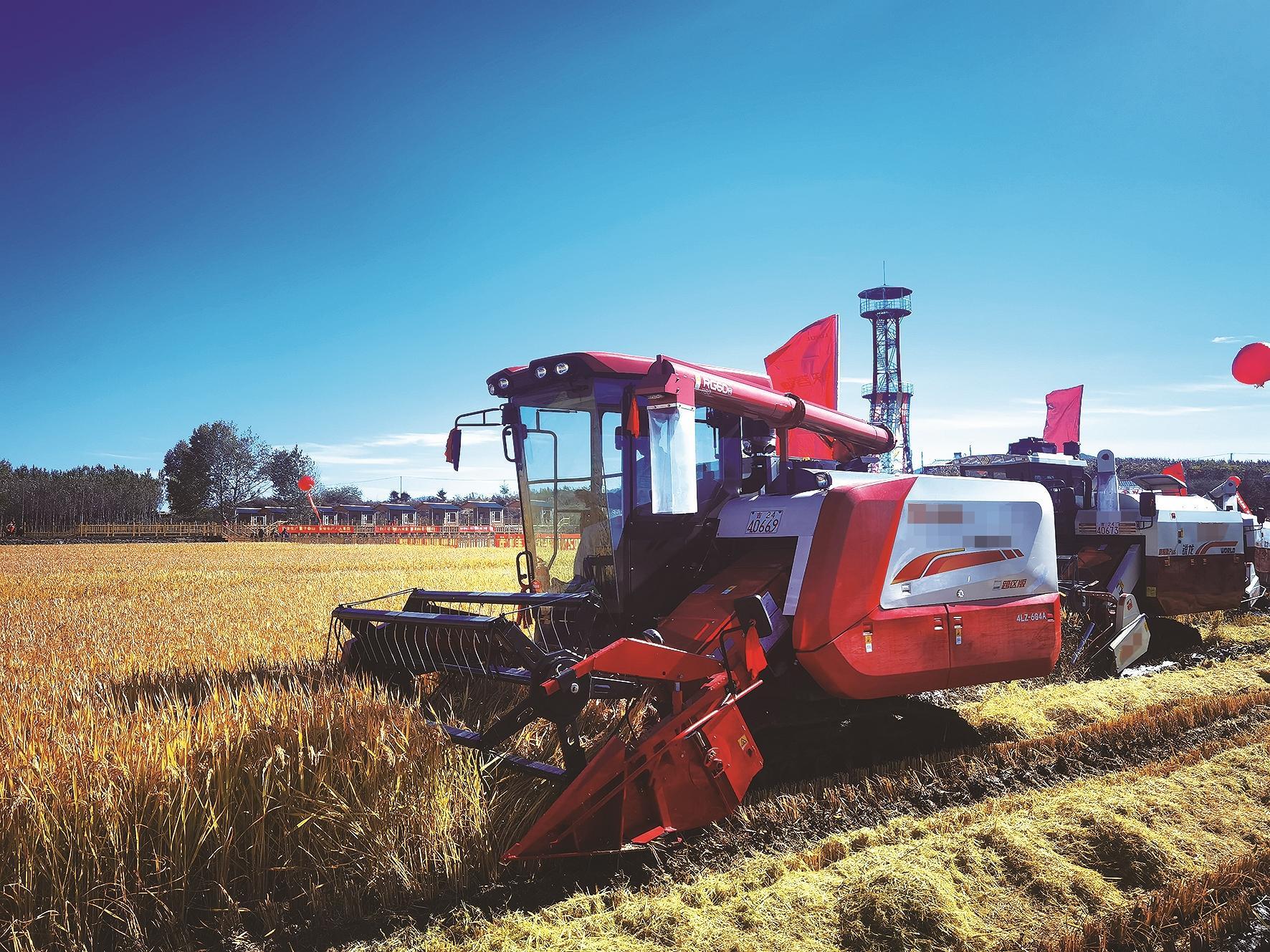 收割機在稻田里開展秋收作業。(資料圖片) 相文雅 攝