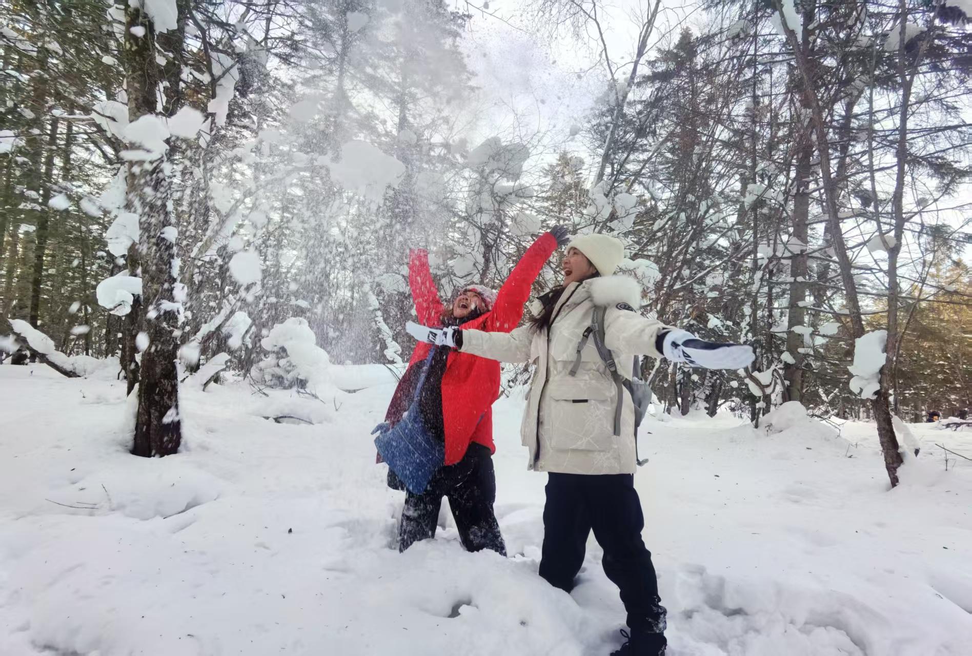 “看這里!”“真是太美了!”林間,浙江的游客許女士和朋友在相互拍照。“老里克將我想象中的冰雪王國具象化了,是我旅行以來最喜歡的地方。這里不僅拍雪景好看,拍人像更是一絕!手機內(nèi)存根本不夠用!”許女士興奮地和記者分享著。