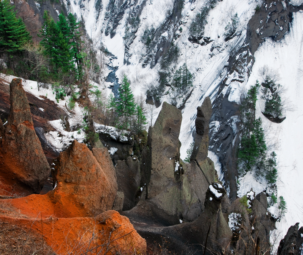 紅褐、翠綠、幽紫、金黃等礦化層,