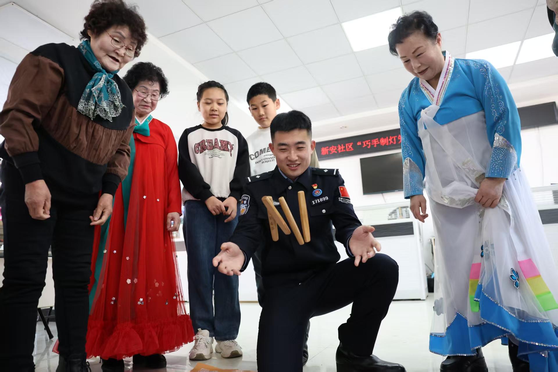 為豐富警營的文化生活,弘揚中華民族優秀傳統文化,活躍節日氣氛,增強各民族之間的文化認同感。2月11日,圖們出入境邊防檢查站聯合新華街道新安社區聯合開展“巧手制燈籠 濃情鬧元宵”主題文化活動。移民管理警察和社區群眾一起制作花燈,玩柶戲,喜迎元宵佳節。 曹遜 攝