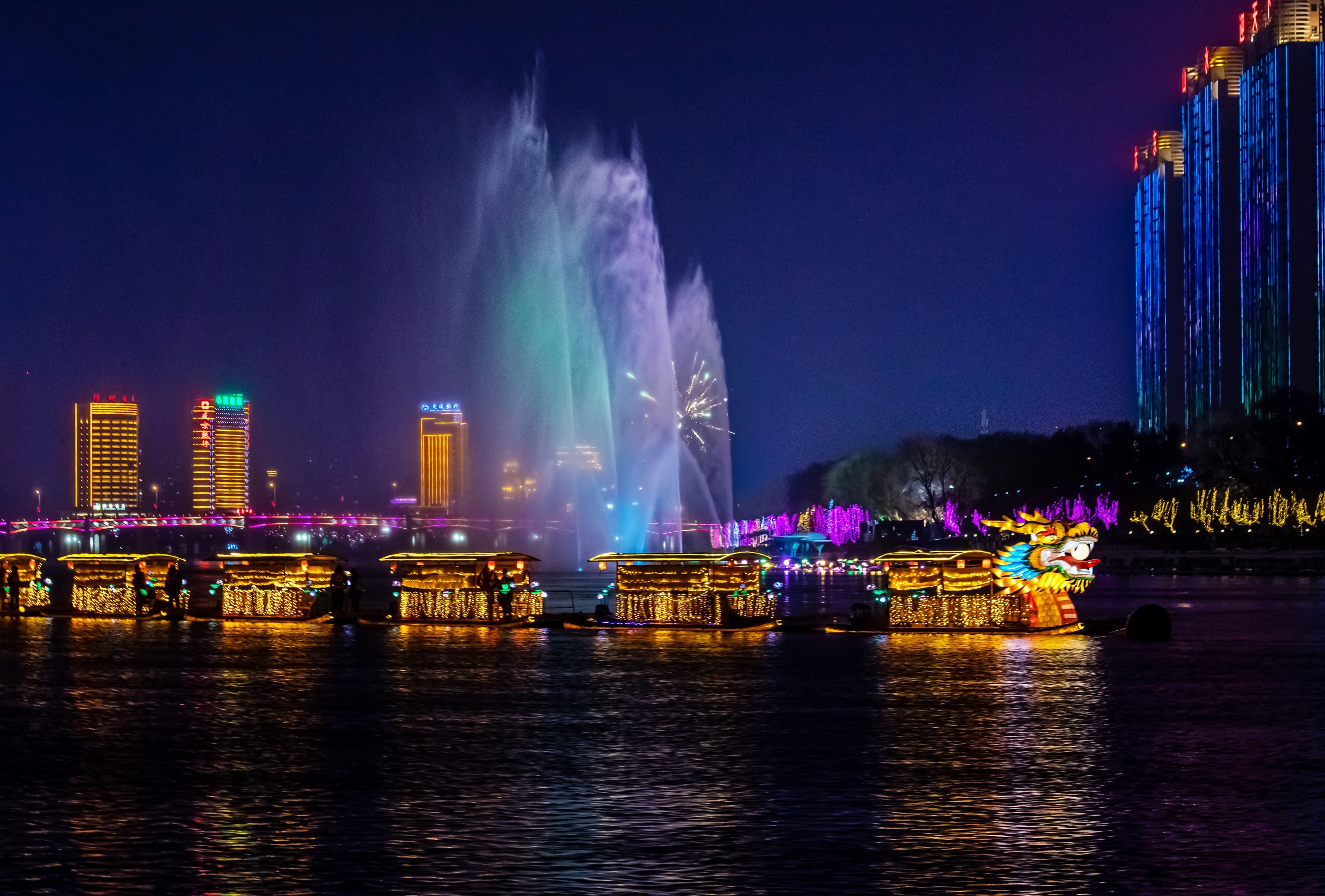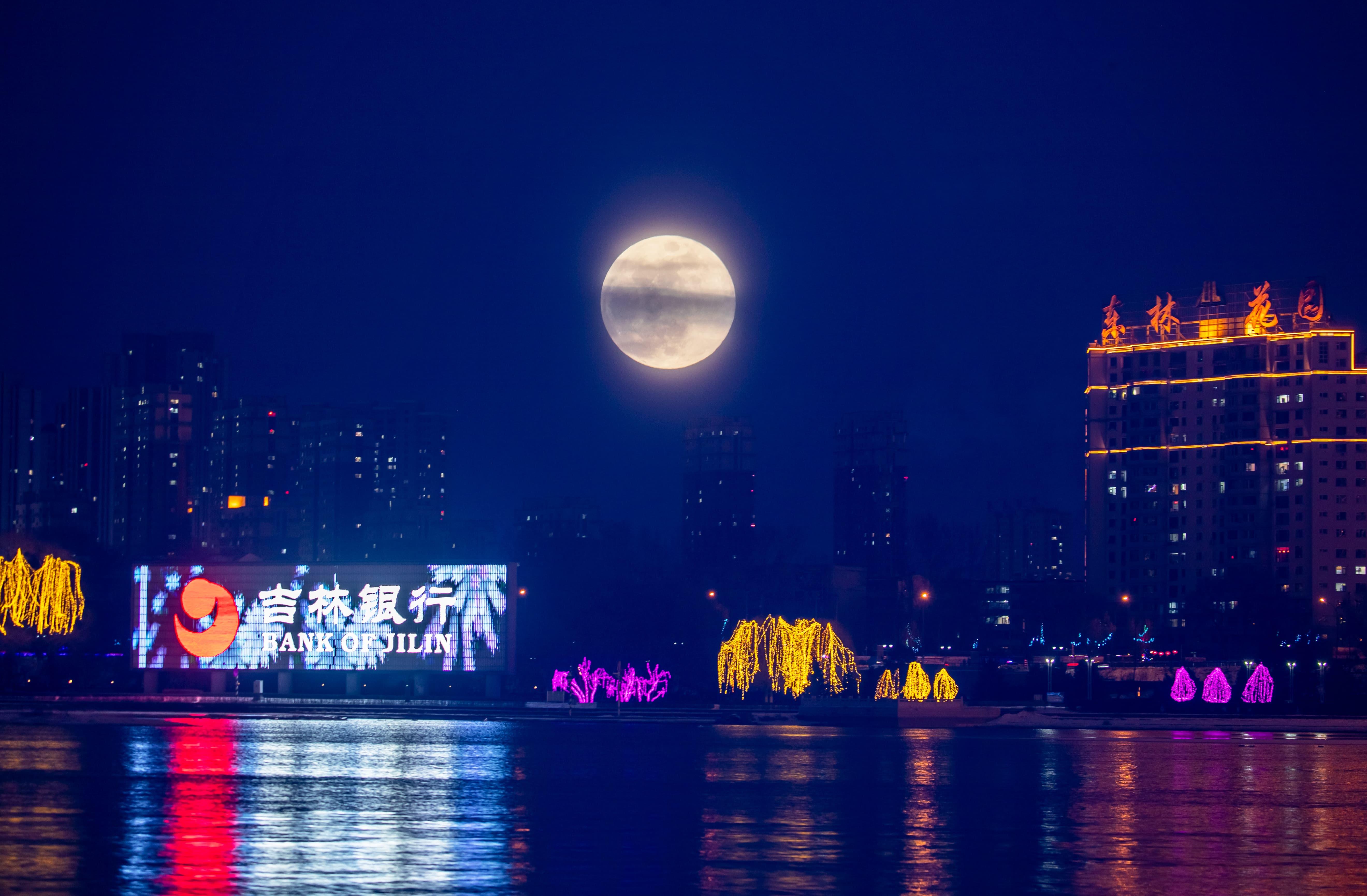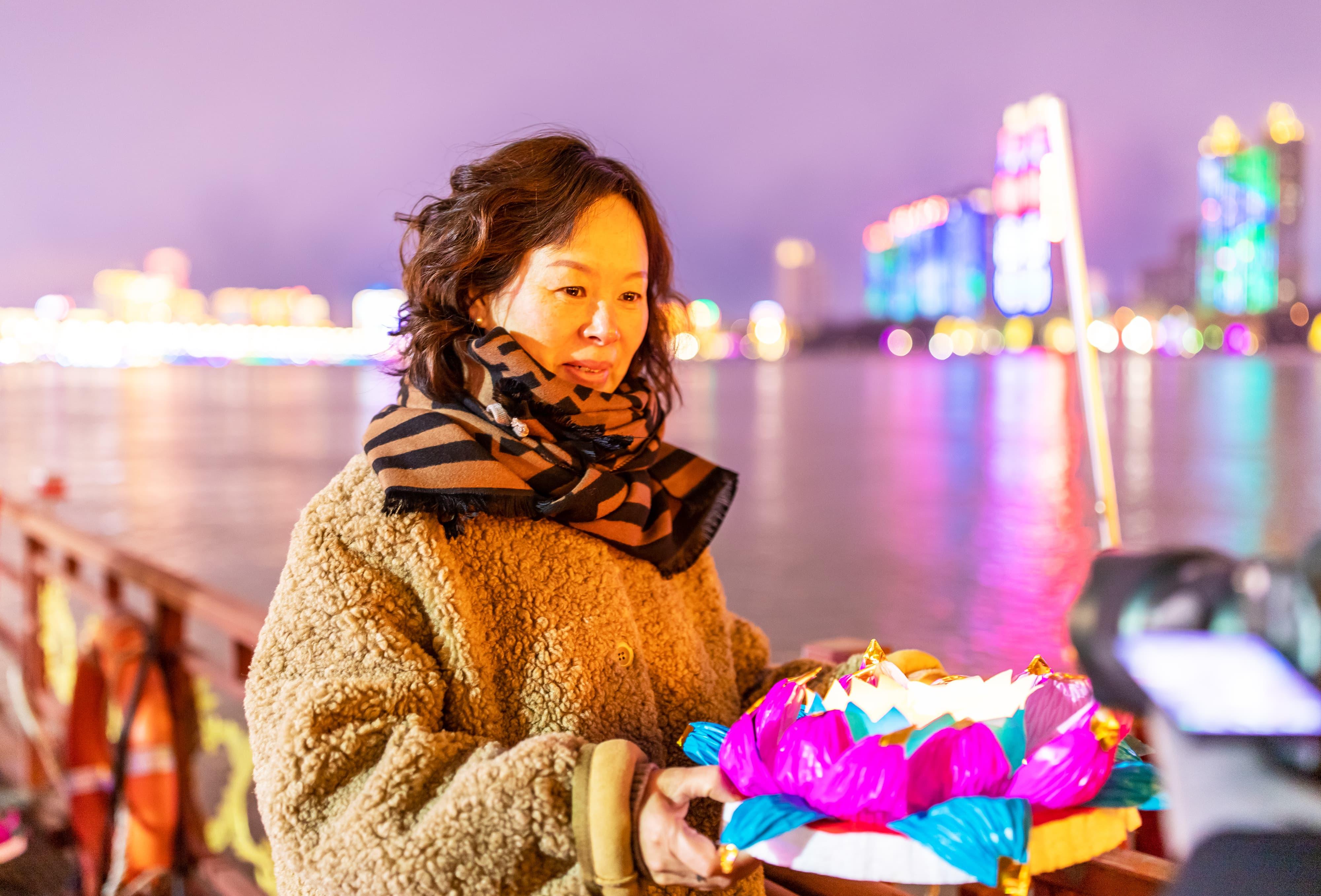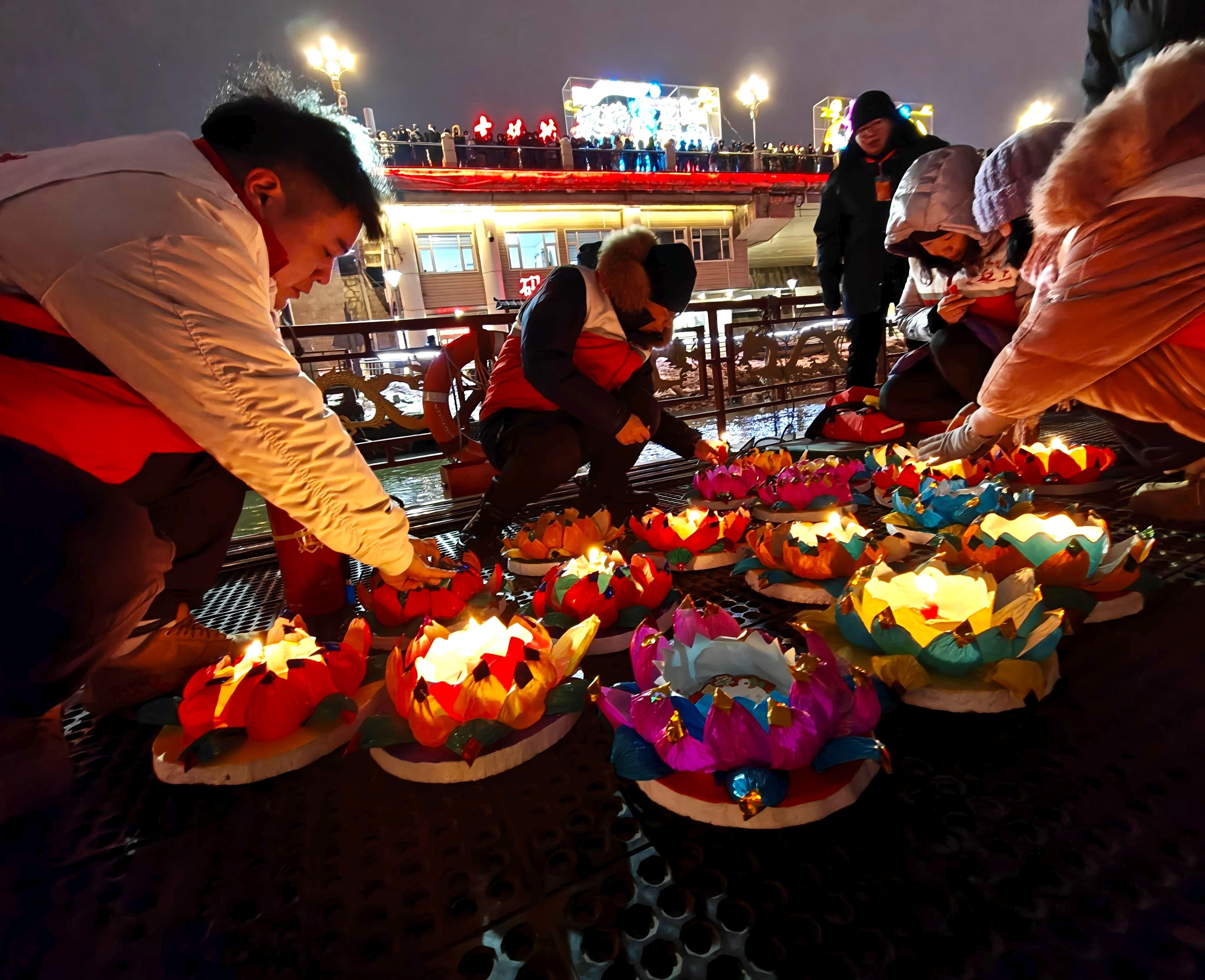 元宵佳節當晚,夜幕降臨后的吉林市松花江畔,彩船游弋、河燈閃亮、圓月當空,一盞盞承載著美好祈愿的河燈順水而下,在夜色中閃爍,與圓月相映成趣,如夢如幻。彩船、河燈、圓月,共同勾勒出蛇年元宵的“松江花月夜”。張景峰攝