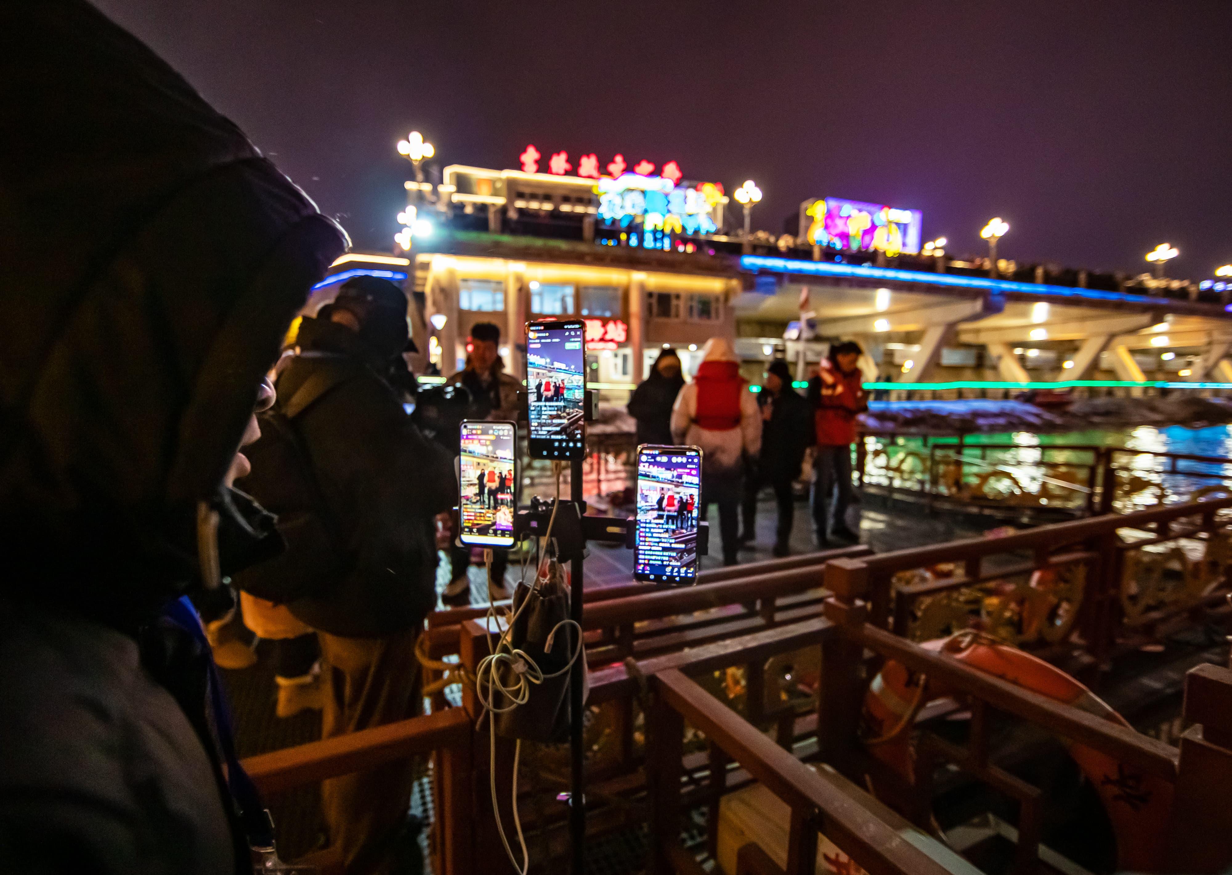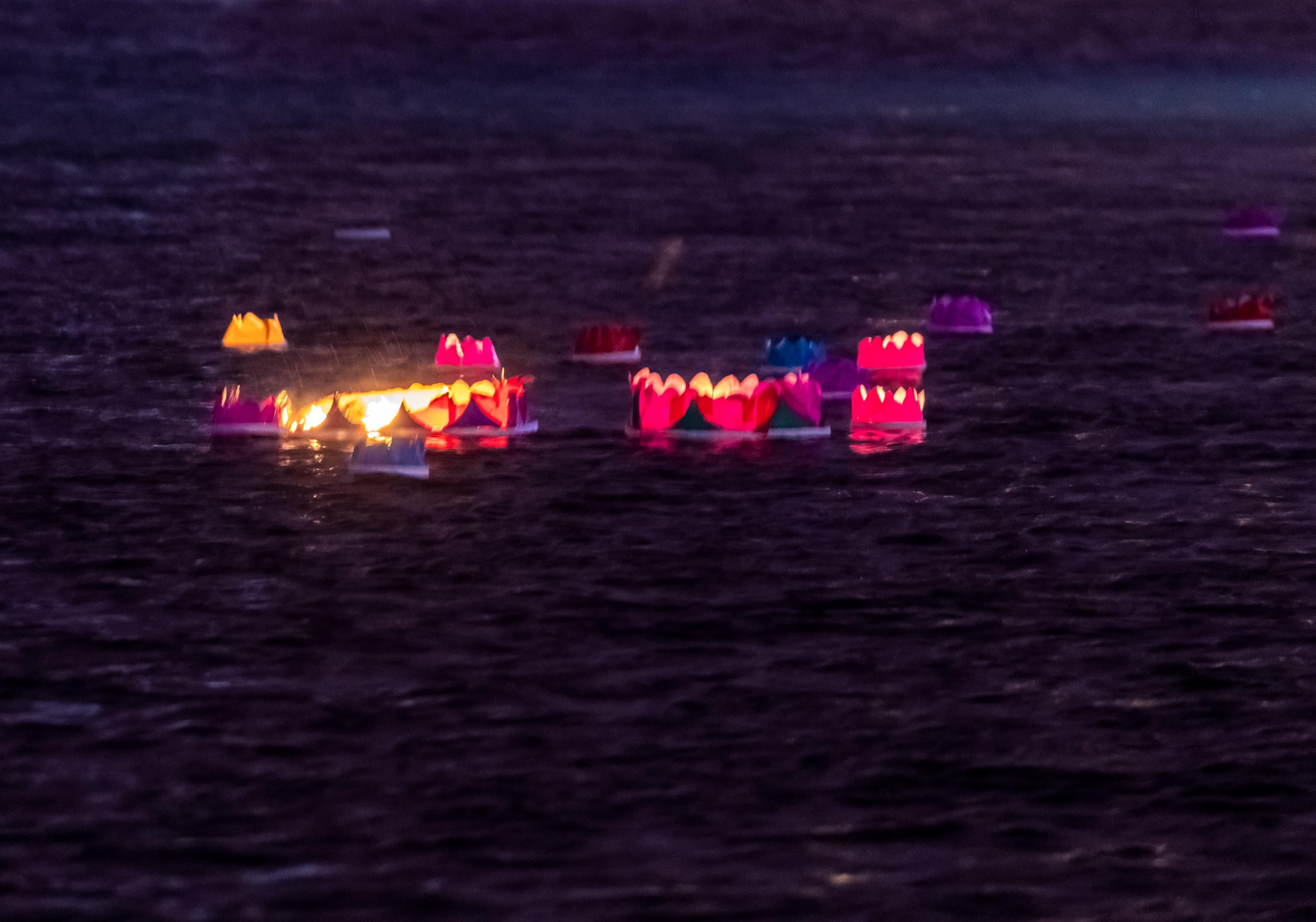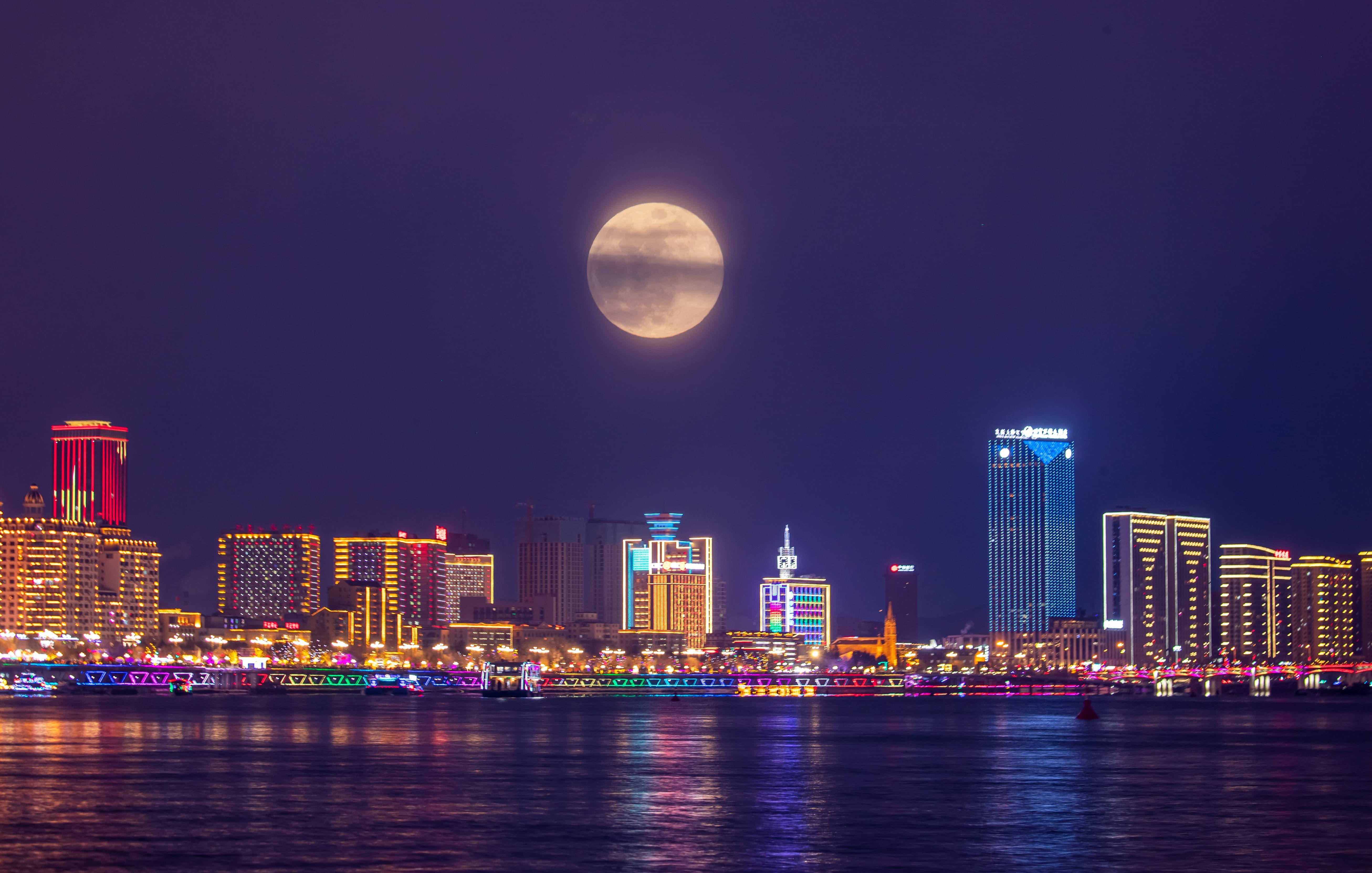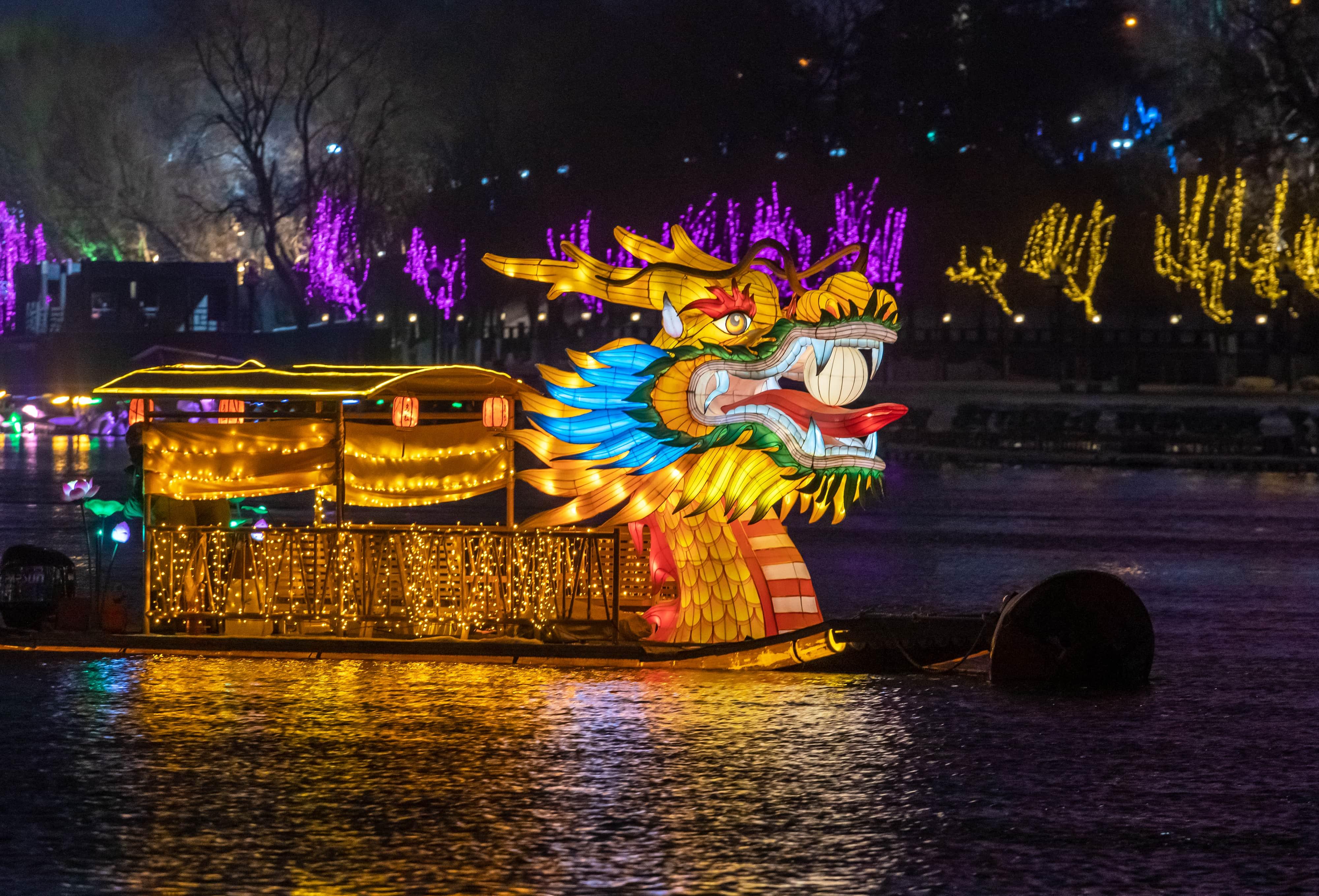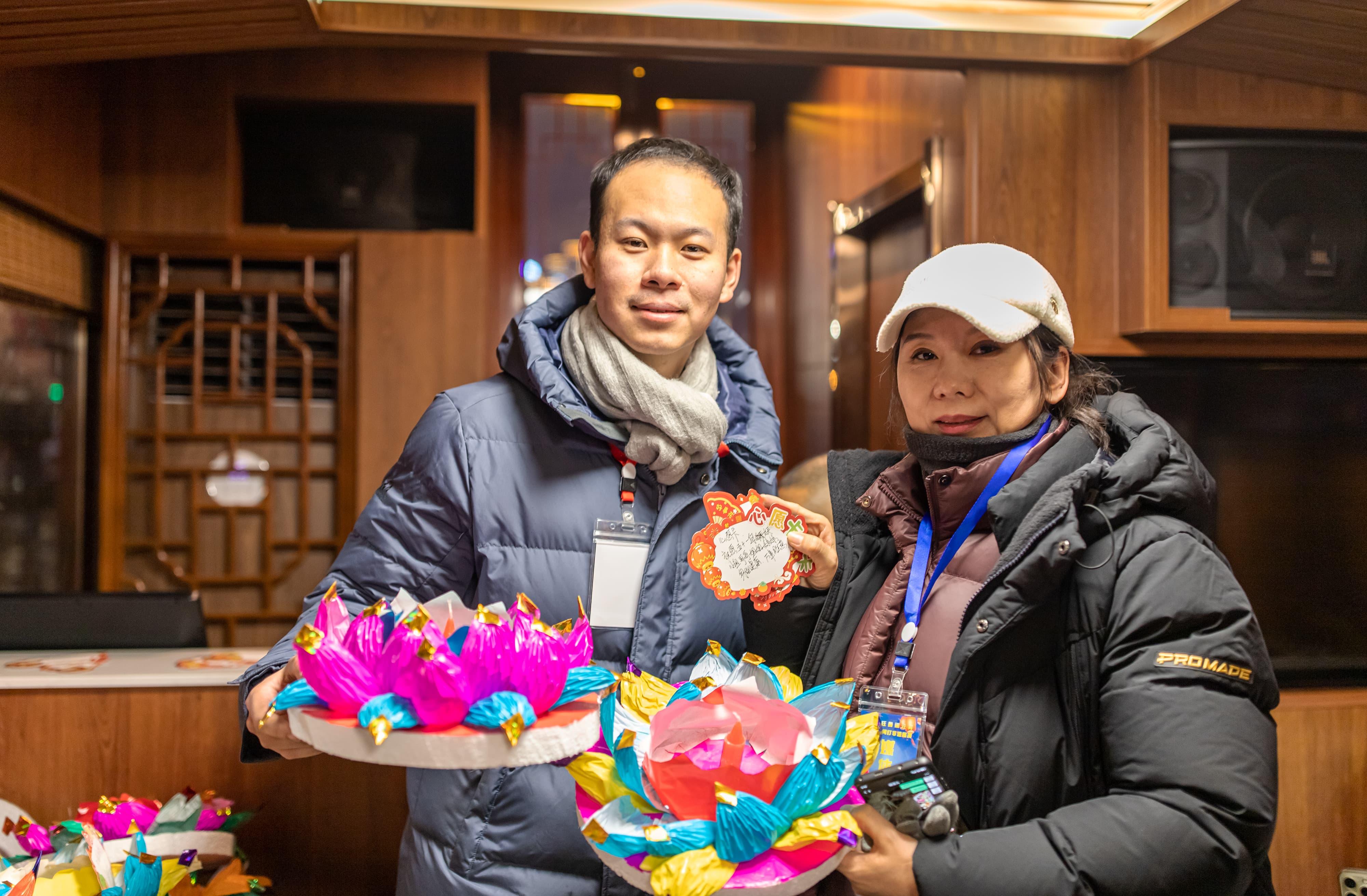 元宵佳節當晚,夜幕降臨后的吉林市松花江畔,彩船游弋、河燈閃亮、圓月當空,一盞盞承載著美好祈愿的河燈順水而下,在夜色中閃爍,與圓月相映成趣,如夢如幻。彩船、河燈、圓月,共同勾勒出蛇年元宵的“松江花月夜”。張景峰攝