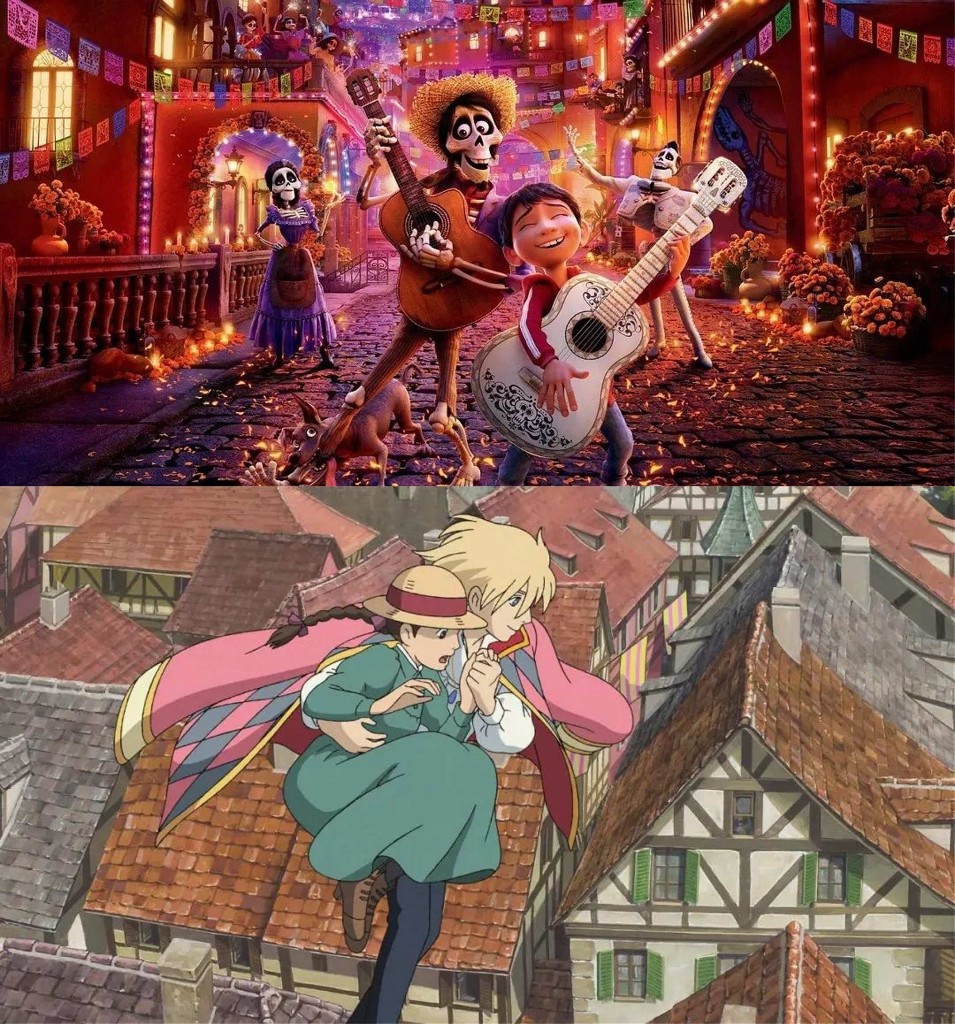 皮克斯的《尋夢環(huán)游記》用亡靈世界講透親情,宮崎駿的《哈爾的移動(dòng)城堡》用魔法對抗戰(zhàn)爭創(chuàng)傷。
