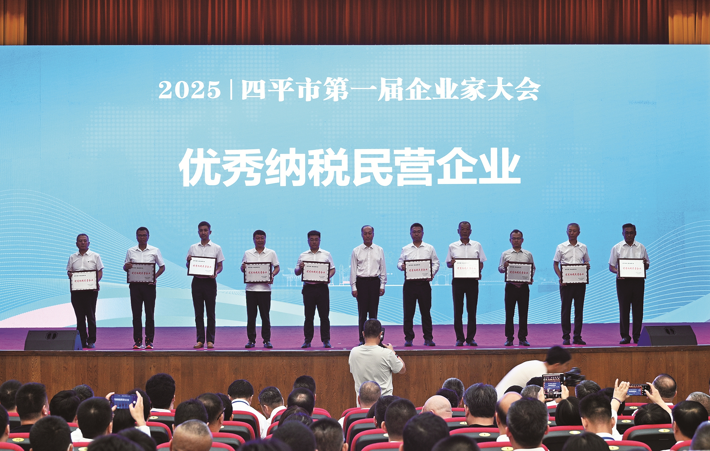 四平市第一屆企業家大會表彰優秀納稅民營企業儀式現場。毛思博 攝