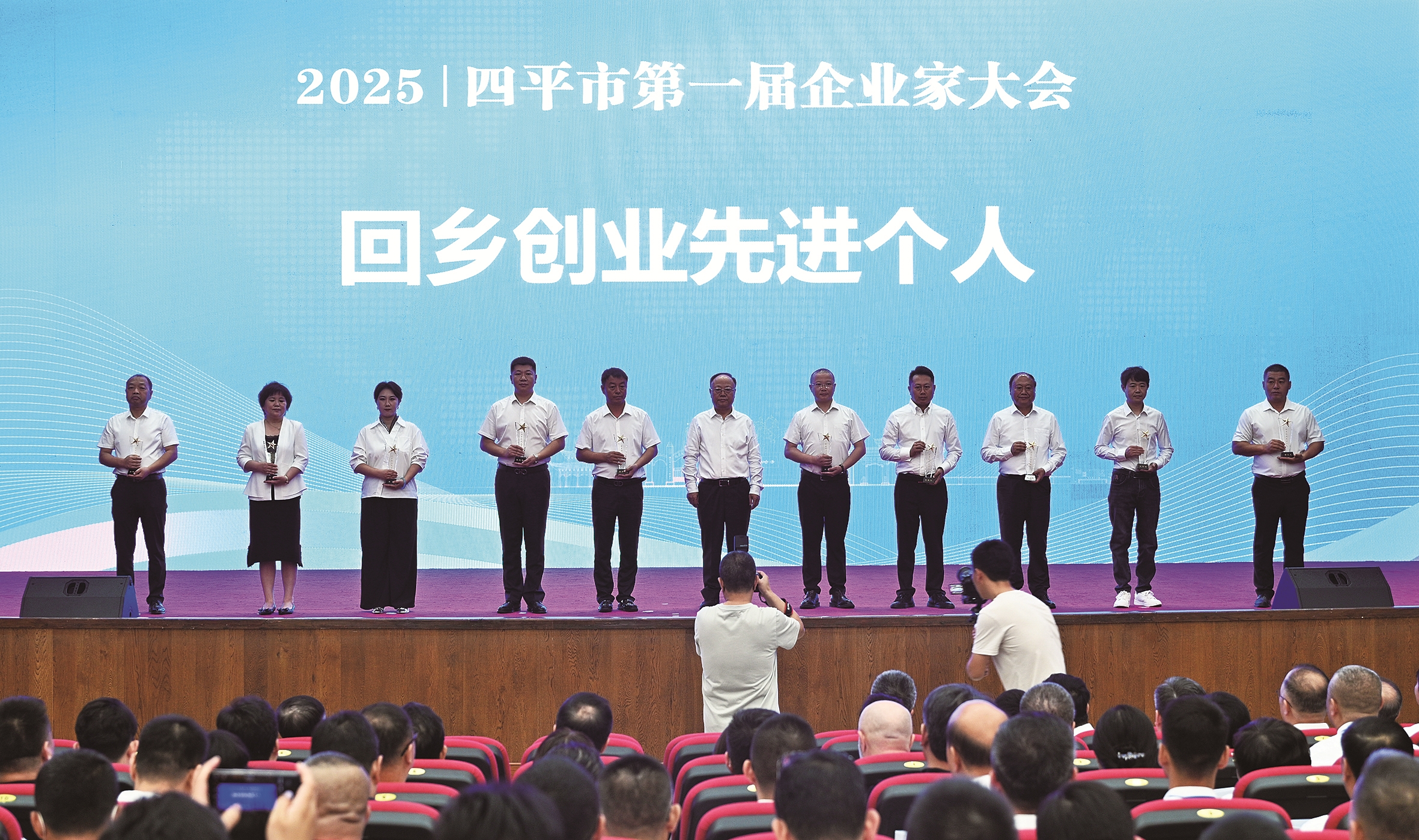 四平市第一屆企業家大會表彰回鄉創業先進個人儀式現場。 毛思博 攝