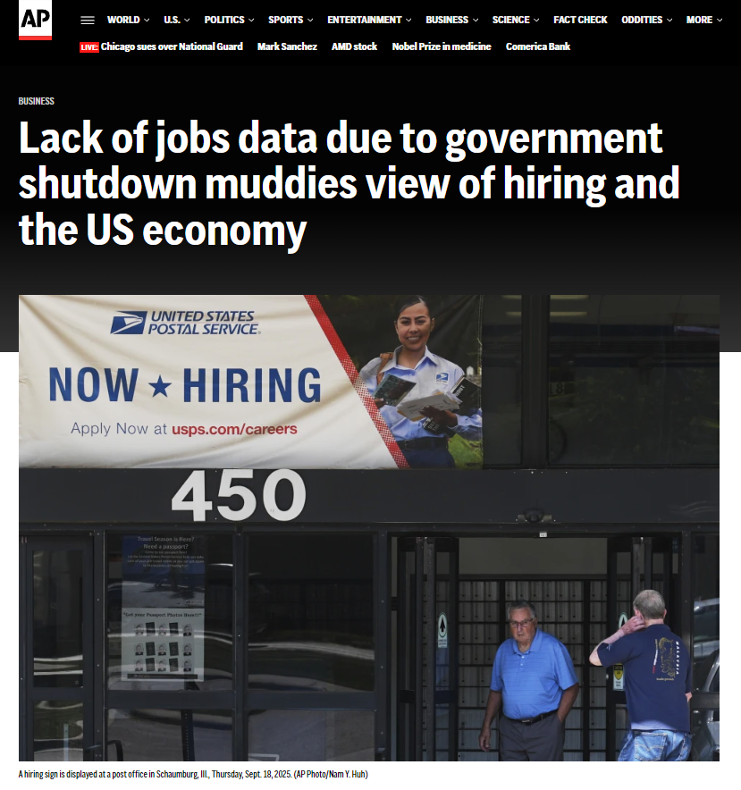 每個月第一個周五是美國勞工部發布月度就業報告的日子。但是由于政府“關門”,上周五并沒有發布任何有關9月就業數據的信息。這是自2013年政府“關門”以來,就業報告首次被推遲發布。