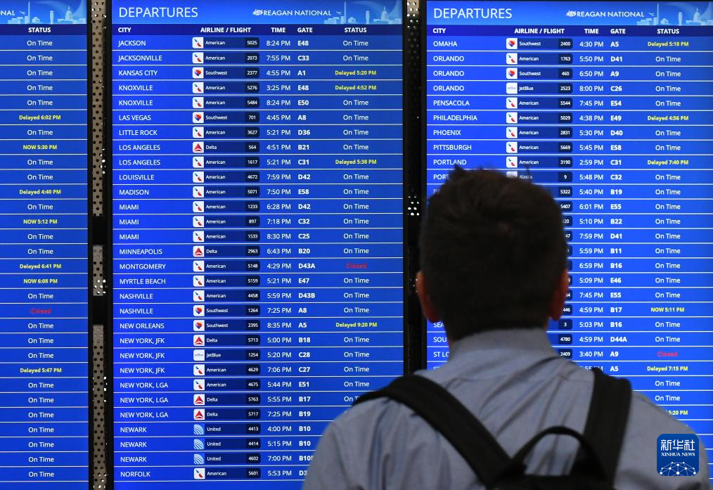 10月10日,在美國弗吉尼亞州阿靈頓的里根國家機場,一名男子查看航班信息。新華社記者 李睿 攝