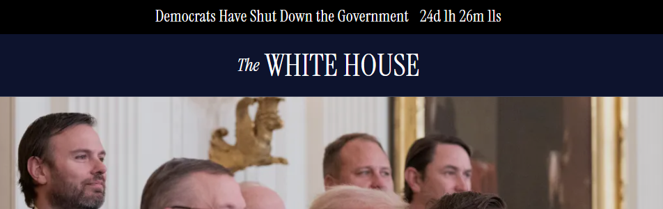白宮網站“民主黨人導致政府‘停擺’”截圖。