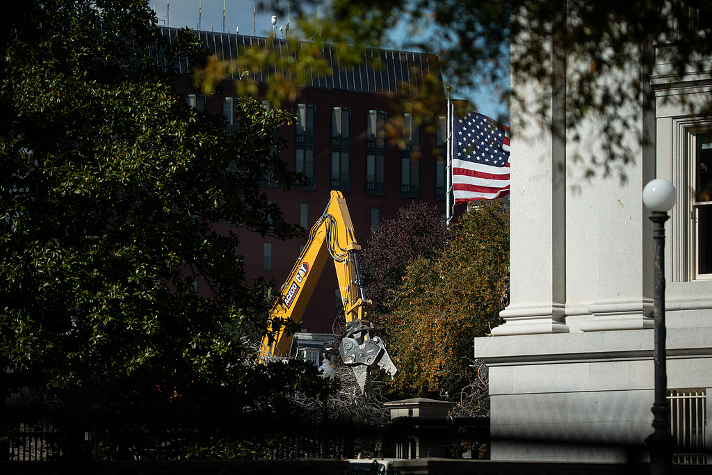 當地時間2025年10月23日,美國華盛頓,白宮東翼被拆除,為白宮新建的宴會廳擴建工程做準備。(圖片來源:視覺中國)