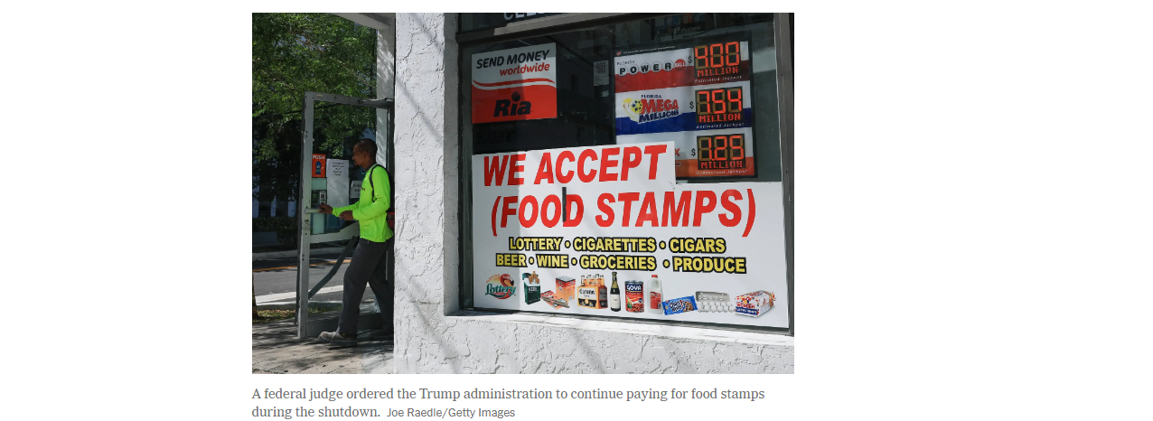 《紐約時報》的報道指出,即使“補充營養援助計劃”的福利在11月的某個時間發放,人們仍然越來越擔心,已經非常脆弱的美國民眾將如何應對聯邦政府關門和社會保障削減帶來的影響。