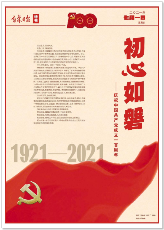 吉林日報大型紀念特刊·初心如磐丨慶祝中國共產黨成立一百周年