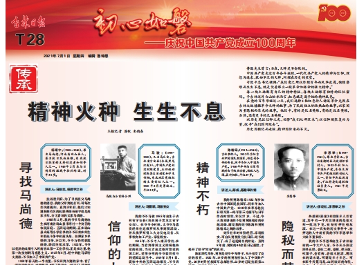 吉林日報大型紀念特刊·初心如磐·傳承丨精神火種 生生不息
