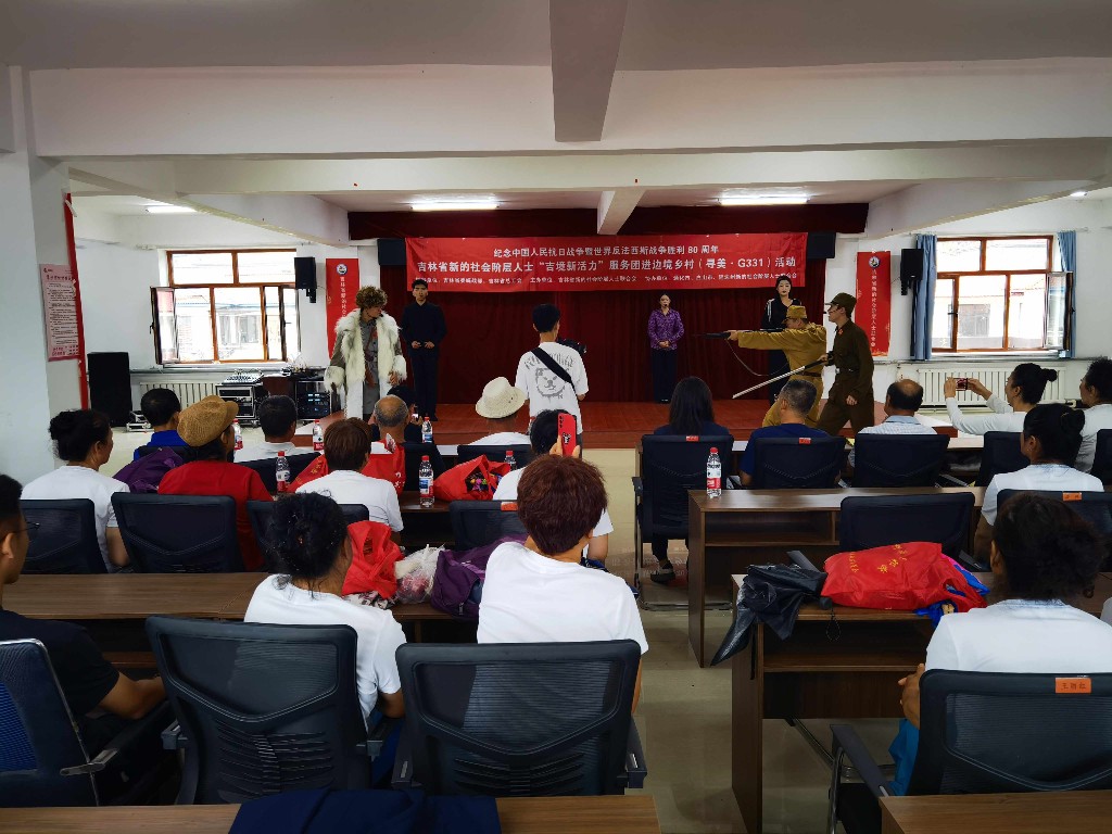 “我的家,在東北松花江上……”9月5日下午,白山市渾江區(qū)三道溝鎮(zhèn),熟悉的旋律響起,服務(wù)團(tuán)炫墨團(tuán)隊(duì)的演員們,以一場情景劇拉開演出序幕。