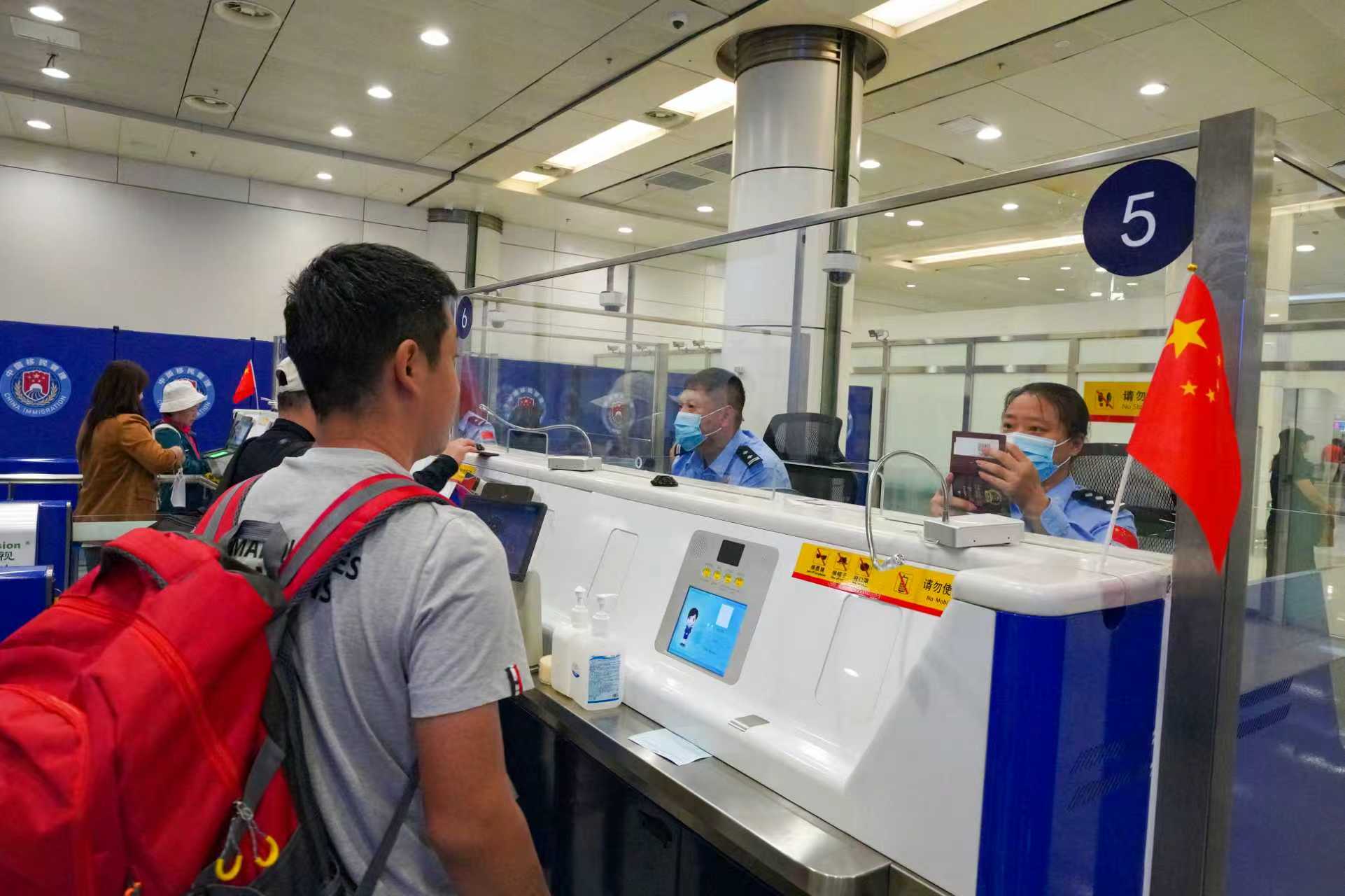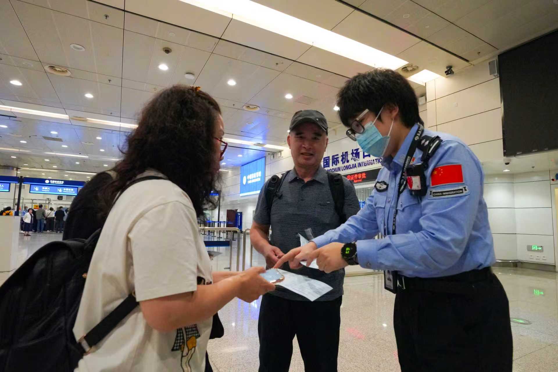 15時(shí),入境大廳迎來(lái)客流高峰,從日本東京返程的航班帶來(lái)數(shù)百名旅客。“您好,歡迎回家!”民警李佳蕙微笑著將護(hù)照遞還給旅客。作為外語(yǔ)骨干,她和同事們用中、韓、日三語(yǔ)服務(wù),及時(shí)解答簽證有效期查詢、行李申報(bào)等問(wèn)題,讓旅客倍感貼心。