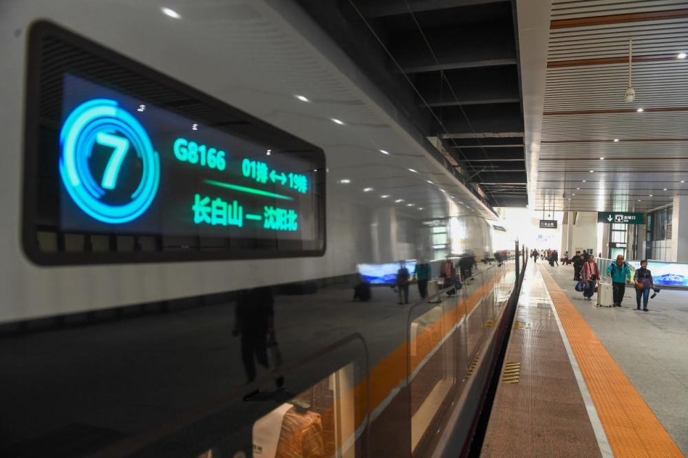 9月28日,旅客在長白山站陸續登上G8166次列車。(新華社記者 張楠 攝)