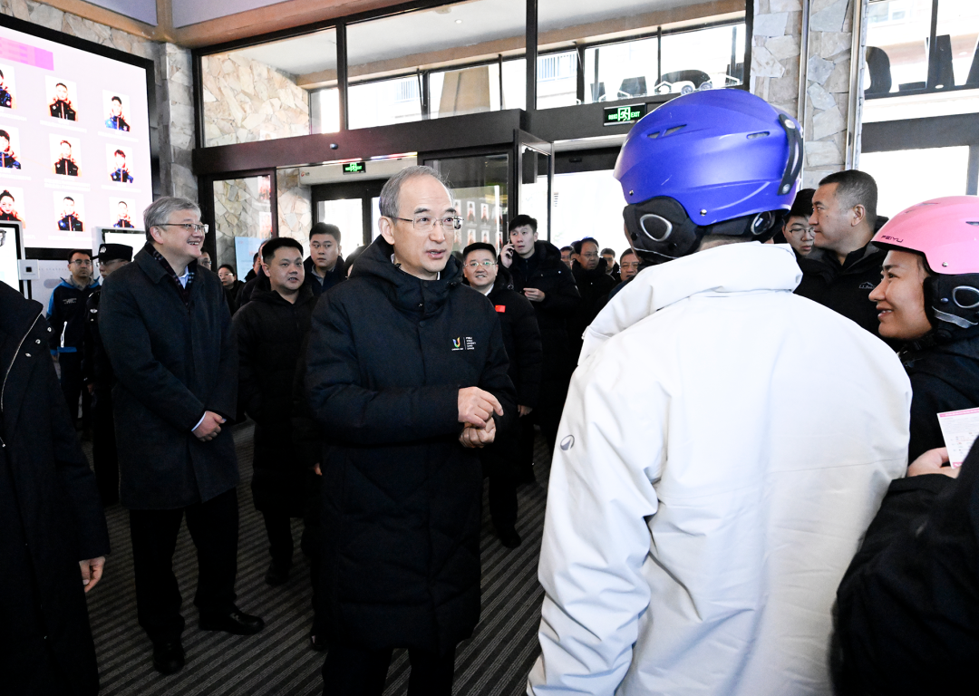 2025-2026新雪季,中旅松花湖度假區新增15萬平方米特色雪道,精心打造樹林道、野蘑菇道、波浪道等多樣化地形,吸引了來自世界各地的眾多滑雪愛好者。黃強、胡玉亭走進雪具大廳,與外省游客親切交流,祝愿他們在吉林玩得盡興。得知中旅松花湖度假區預售火爆,黃強十分高興,他說,這個雪季,我省采取一系列政策措施,發放1億元冰雪消費券,安排中小學生放雪假,就是要進一步激發冰雪經濟活力。省內各滑雪場要抓住有利契機,加大宣傳力度,提供更高品質服務,共同把吉林打造成世界級冰雪旅游目的地。在吉林化纖展位前,黃強、胡玉亭詳細了解冰雪裝備新產品性能,鼓勵企業做好創新研發,推出更多市場歡迎的優質產品。黃強、胡玉亭還來到度假區商業街,實地察看商戶經營情況。