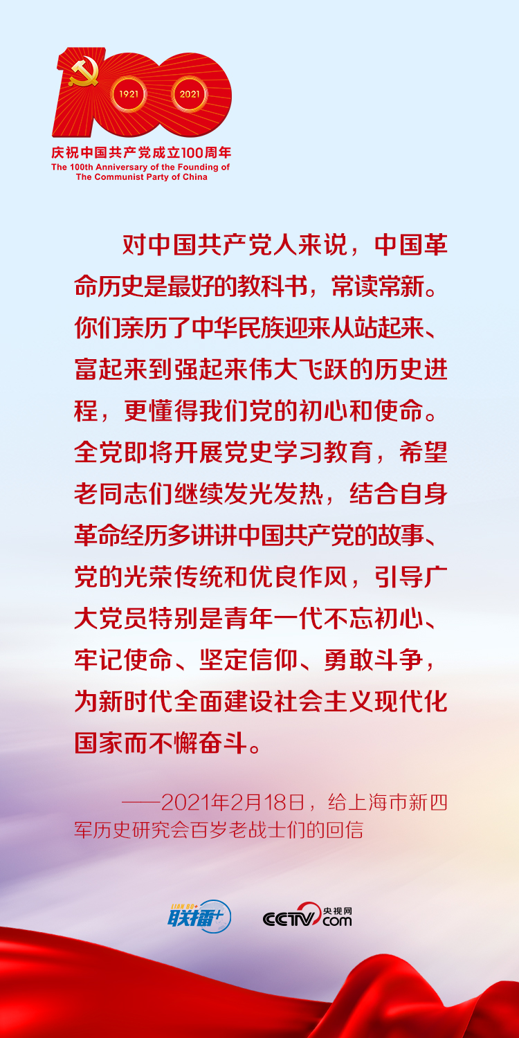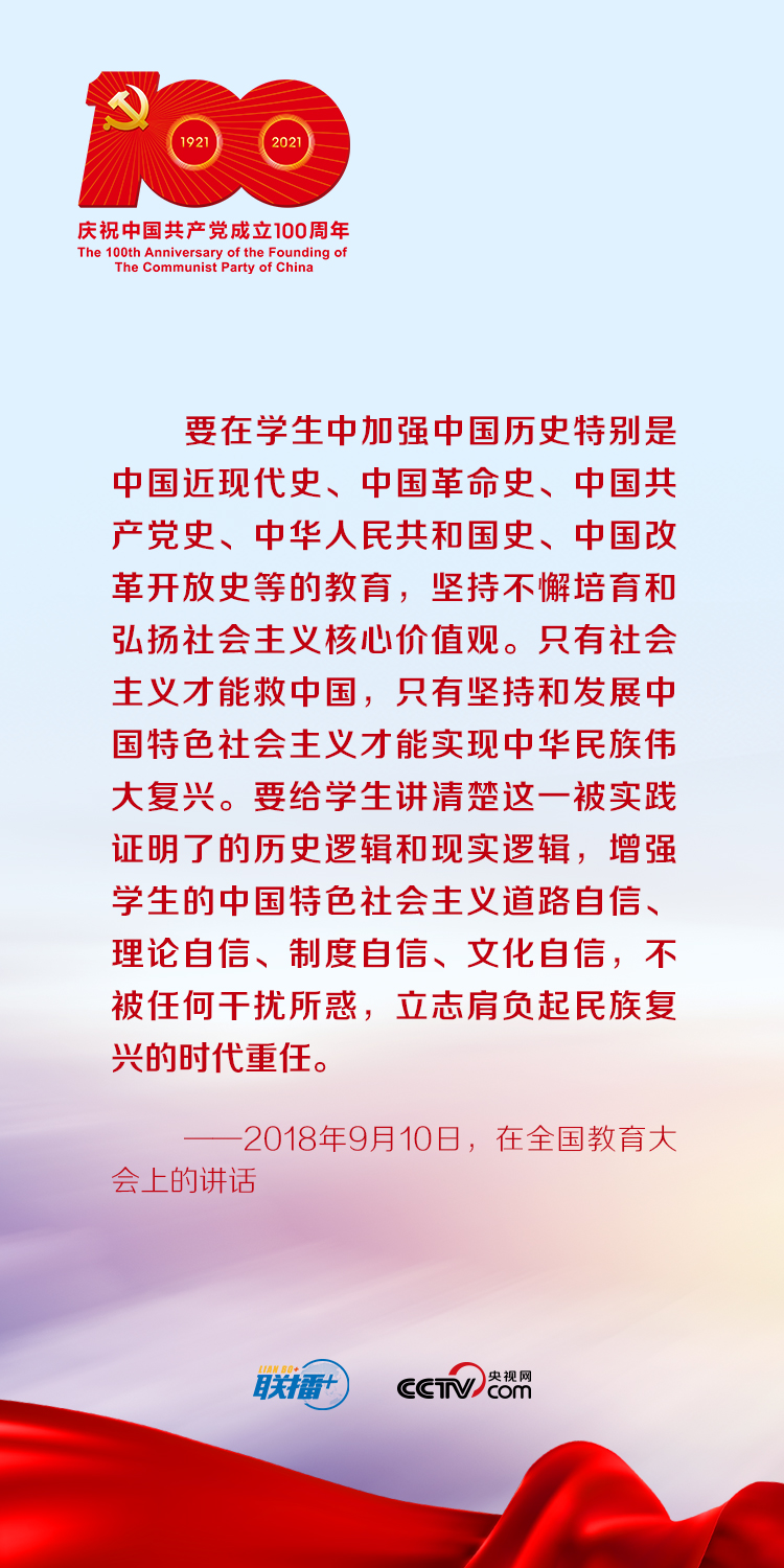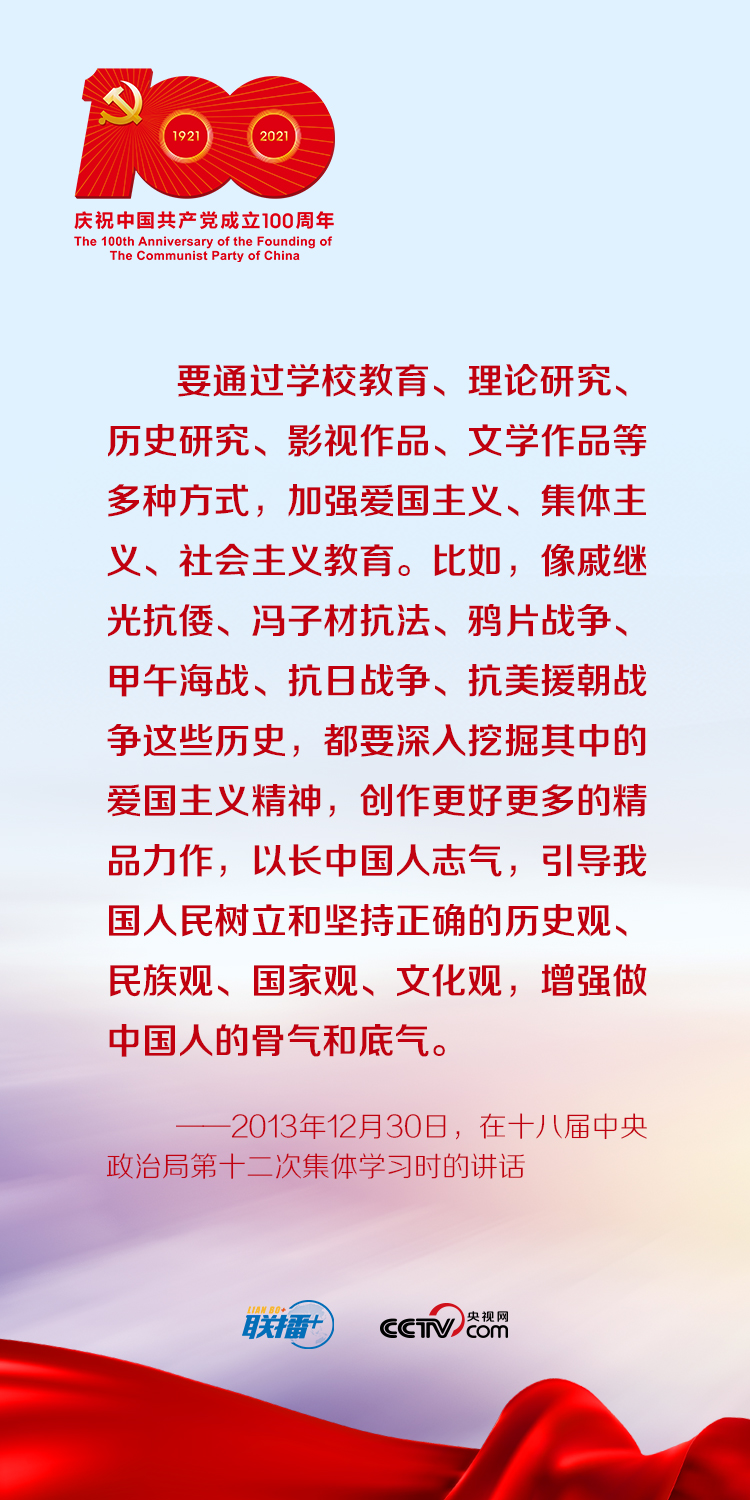 央視網(wǎng)《聯(lián)播+》特梳理習(xí)近平總書記重要講話,與您一起學(xué)習(xí)黨史、新中國史,以史明志。