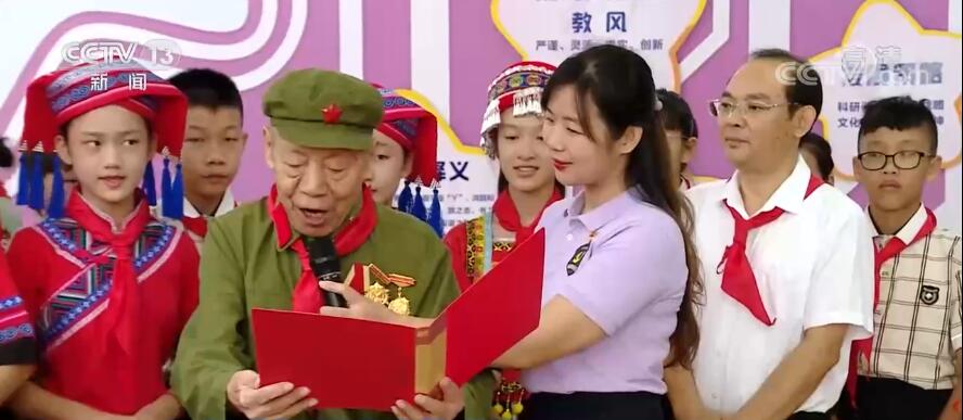 在廣西南寧市園湖路小學,182名新隊員佩戴紅領巾,光榮加入中國少年先鋒隊。“共和國勛章獲得者”李延年,以及田沛霖、張樹德三位老戰士還為少先隊員們講述曾經的戰斗故事,并勉勵少先隊員好好學習,錘煉本領。