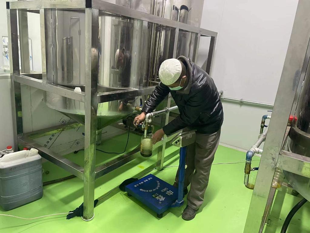 工人朱應(yīng)飽查看油品情況。 下合樂寺村提供