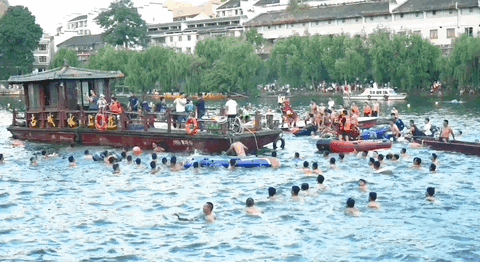這里每年都會舉辦隆重的賽龍舟文化節(jié)。除了賽龍舟,還有傳統(tǒng)的祭龍儀式、民間文藝踩街、彩船和龍舟游江、水中搶鴨子、?水放河燈等豐富的民俗活動。
