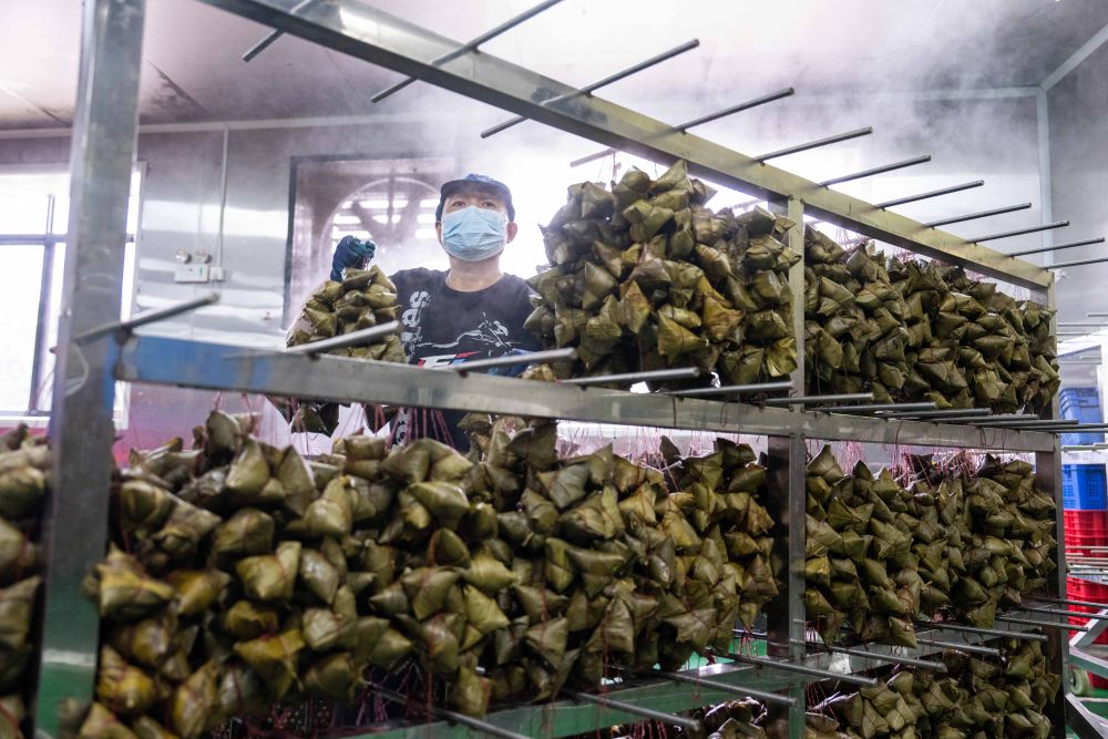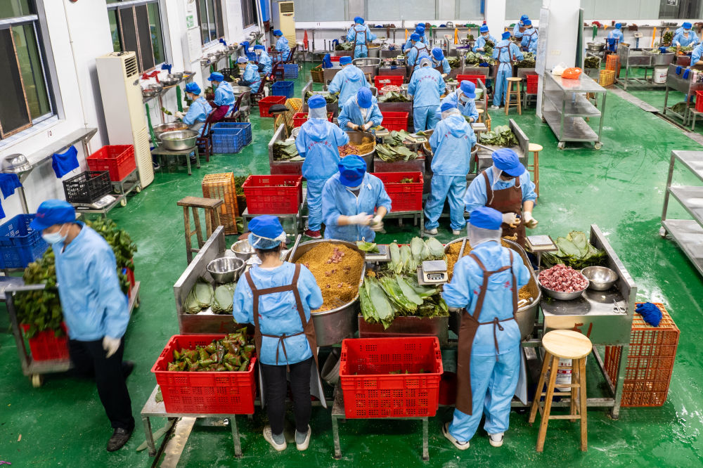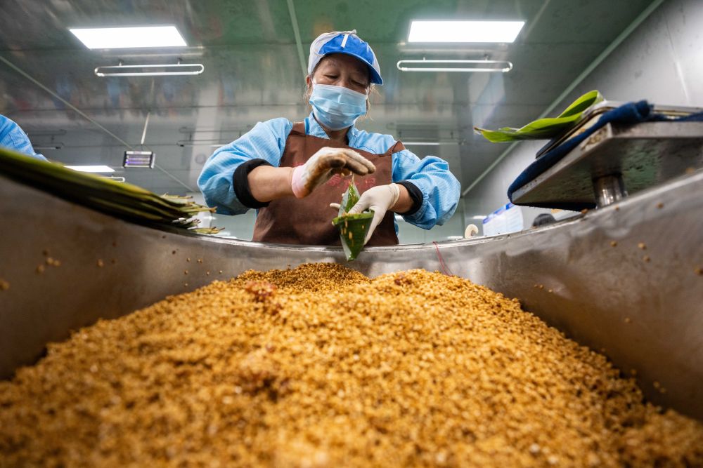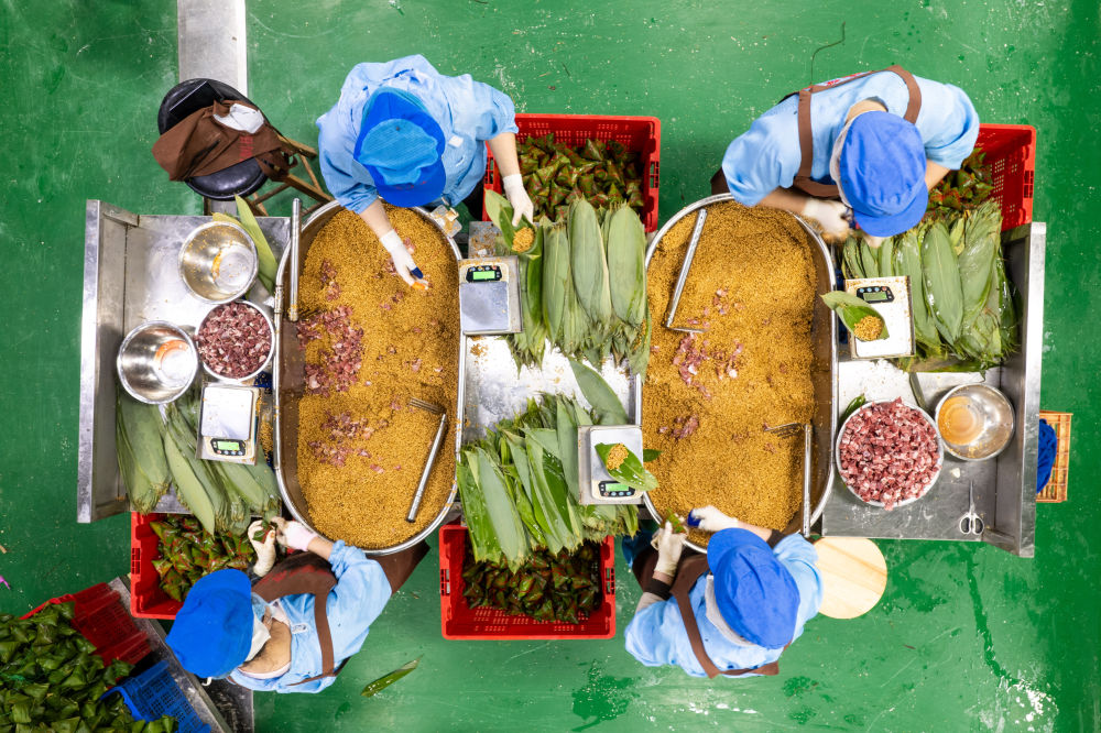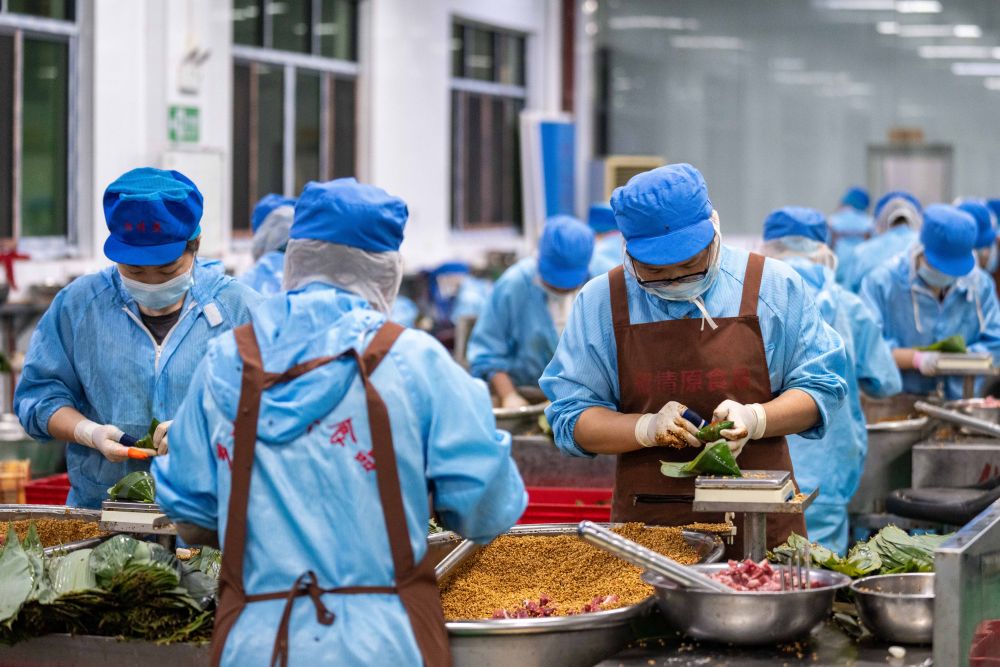端午臨近,湖南省瀏陽市關口街道道源湖村多個粽子生產(chǎn)車間抓緊生產(chǎn)粽子。近年來,該村立足本地資源,通過生產(chǎn)規(guī)模化、配套體系化,推動粽子產(chǎn)業(yè)集群發(fā)展。據(jù)了解,道源湖村1308戶居民中有60%以上從事粽子生產(chǎn)相關工作,2023年該村粽子產(chǎn)業(yè)年產(chǎn)值超1.3億元。
